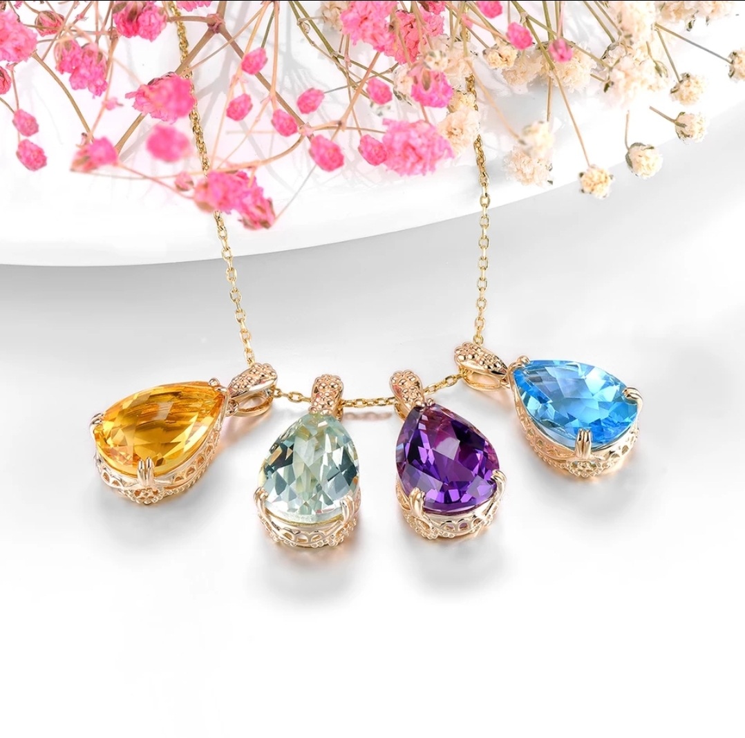 Delight in the sophistication of this 15x10mm Checkerboard Faceted Pear Natural Gemstone Necklace. Featuring an exquisitely cut gemstone in a unique pear shape, this pendant commands attention. Choose from an array of natural Swiss blue topaz, citrine, garnet, prasiolite or amethyst gemstones, each uniquely brilliant. With facets intricately carved in a checkerboard pattern, the pendants are engineered to capture and reflect light from all angles, producing a fascinating sparkle. Hovering from an 18" chain, the pendant is expertly crafted in your choice of gleaming 14K Yellow Gold, 14K Rose Gold or 14K White Gold. This necklace is an exercise in grandeur, whether for a special occasion or for everyday elegance. Claim this symbol of extravagance and make an unerasable impression.