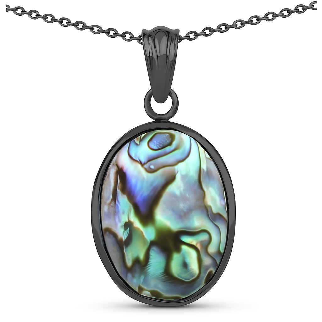 Upgrade your beach vibes with this trendy Abalone Shell Oval Bezel Pendant Necklace! The 22x16mm oval natural Abalone Shell is bezel set in rhodium over sterling silver, creating a colorful and eye-catching piece that is perfect for any summer outfit.