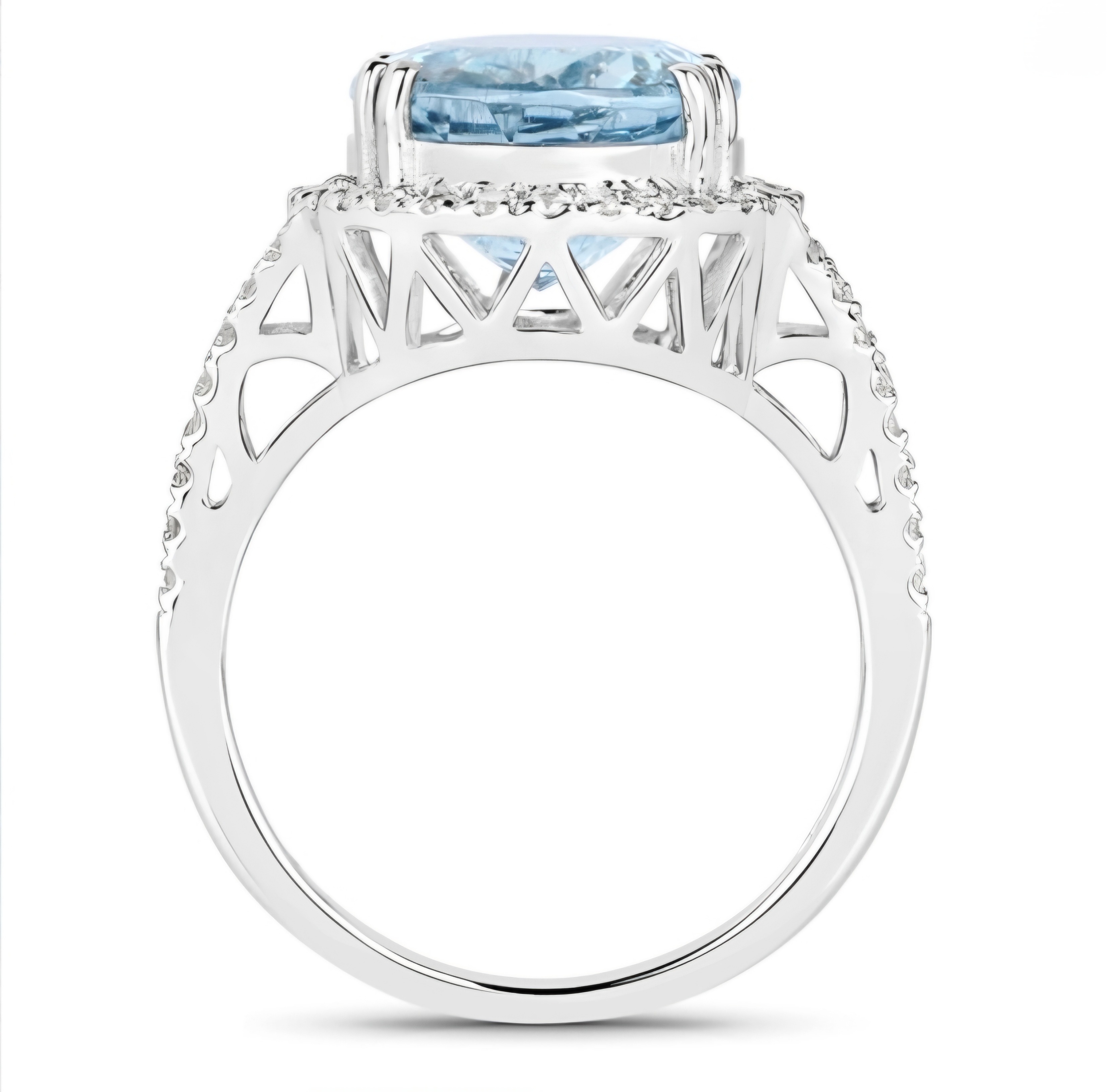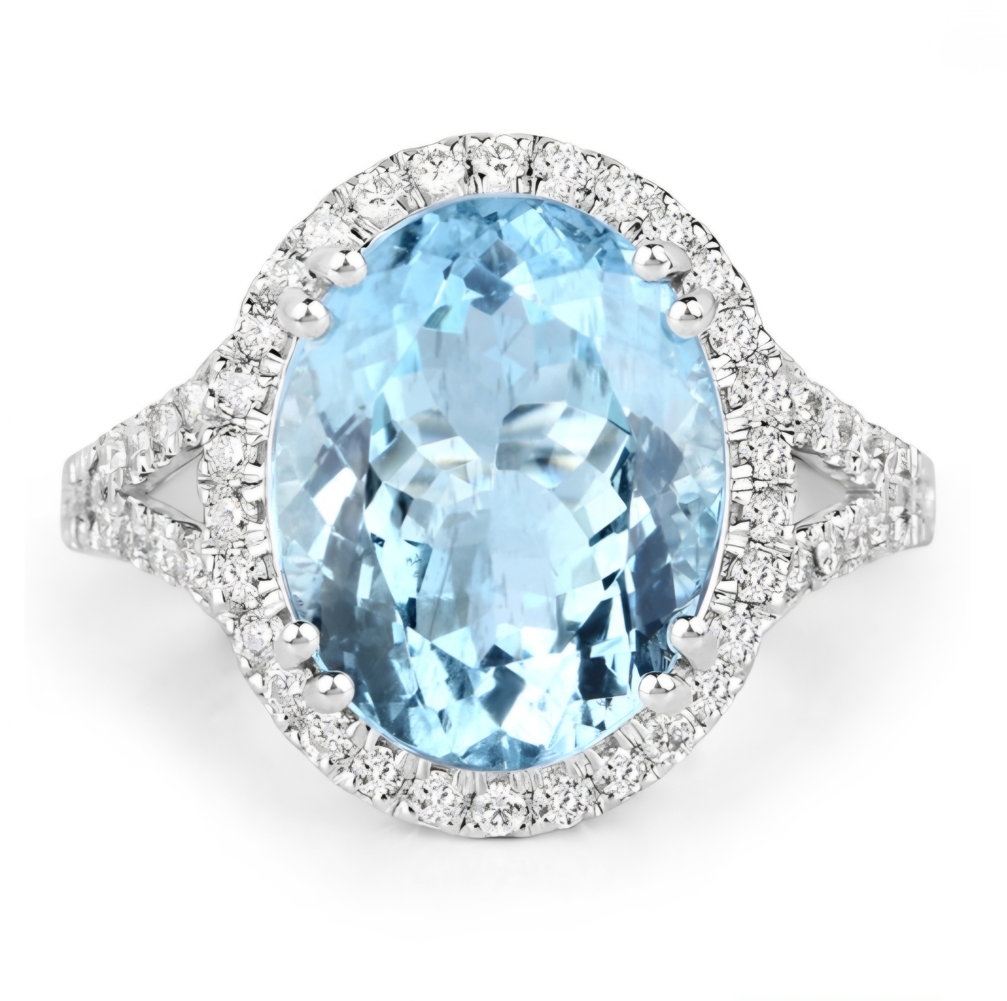 Elevate your jewelry collection with our stunning Aquamarine & Diamond Oval Halo Ring in Solid 14k White Gold. This luxurious piece features a high quality 13.50x10.80mm oval natural Aquamarine center stone surrounded by 0.54ct of sparkling round cut white diamonds in a halo and down the split shank design. Treat yourself to a touch of elegance and sophistication with this eye-catching ring.