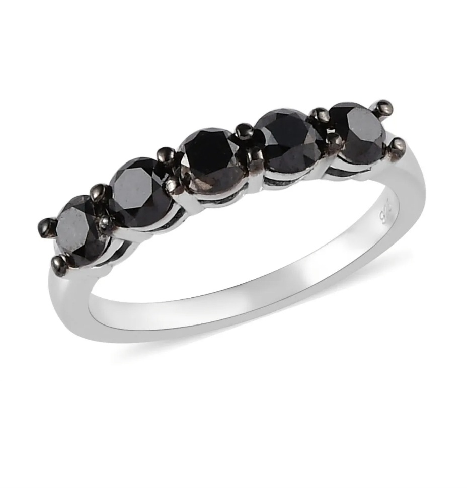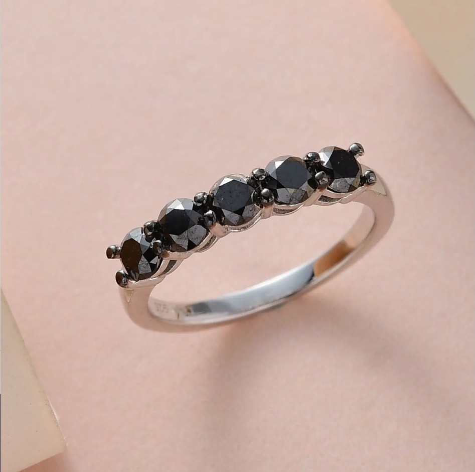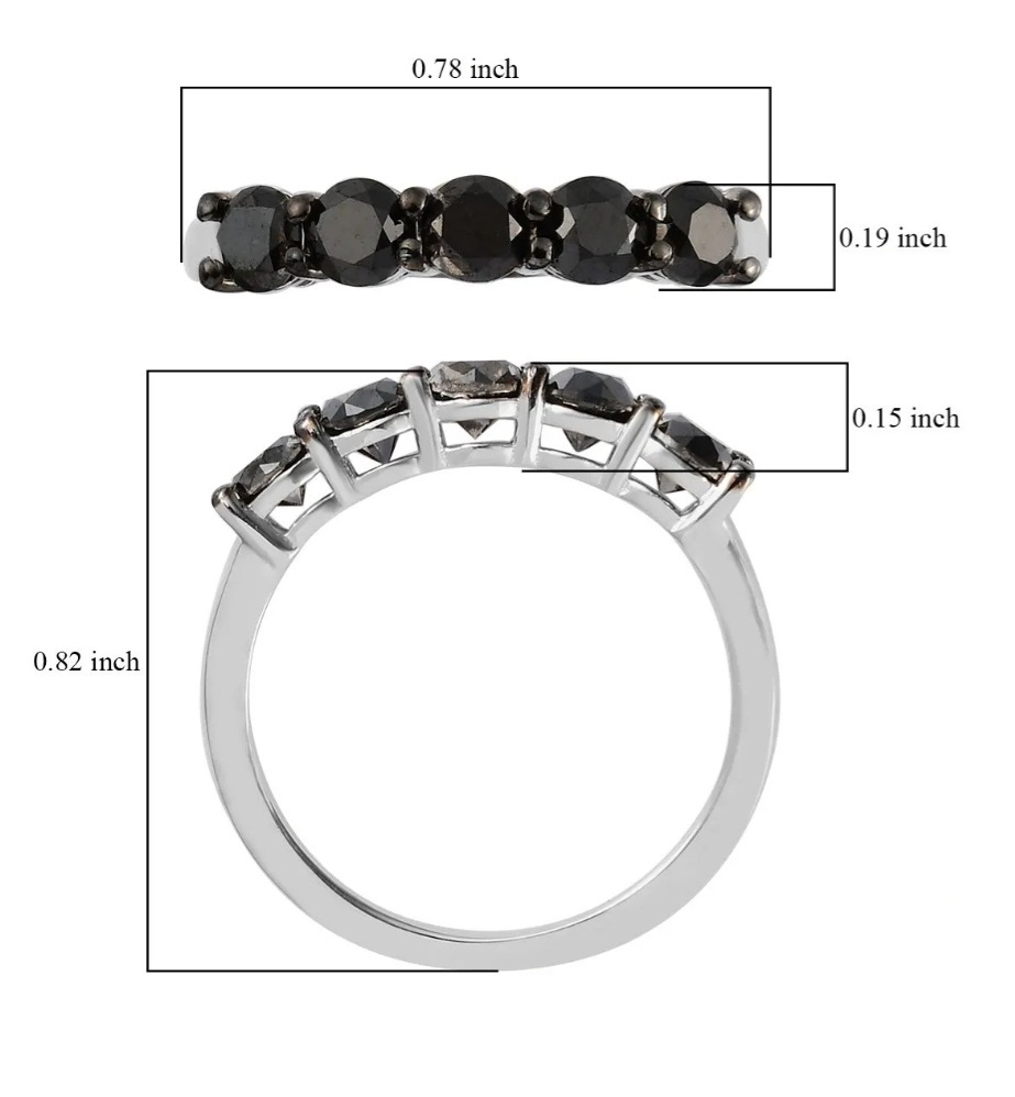Indulge in the allure of understated sophistication with the Black Diamond 5 Stone Wedding Ring. Exquisitely designed, this luxurious piece blends the charm of a classic wedding ring with the magical essence of natural Black Diamonds. A remarkable 1.00ctw of these rare gems grace the Rhodium over Sterling Silver band, skillfully accentuating each stone's captivating beauty. Immerse yourself in the timeless elegance of this masterpiece, tailor-made for those seeking a classically opulent symbol of love.