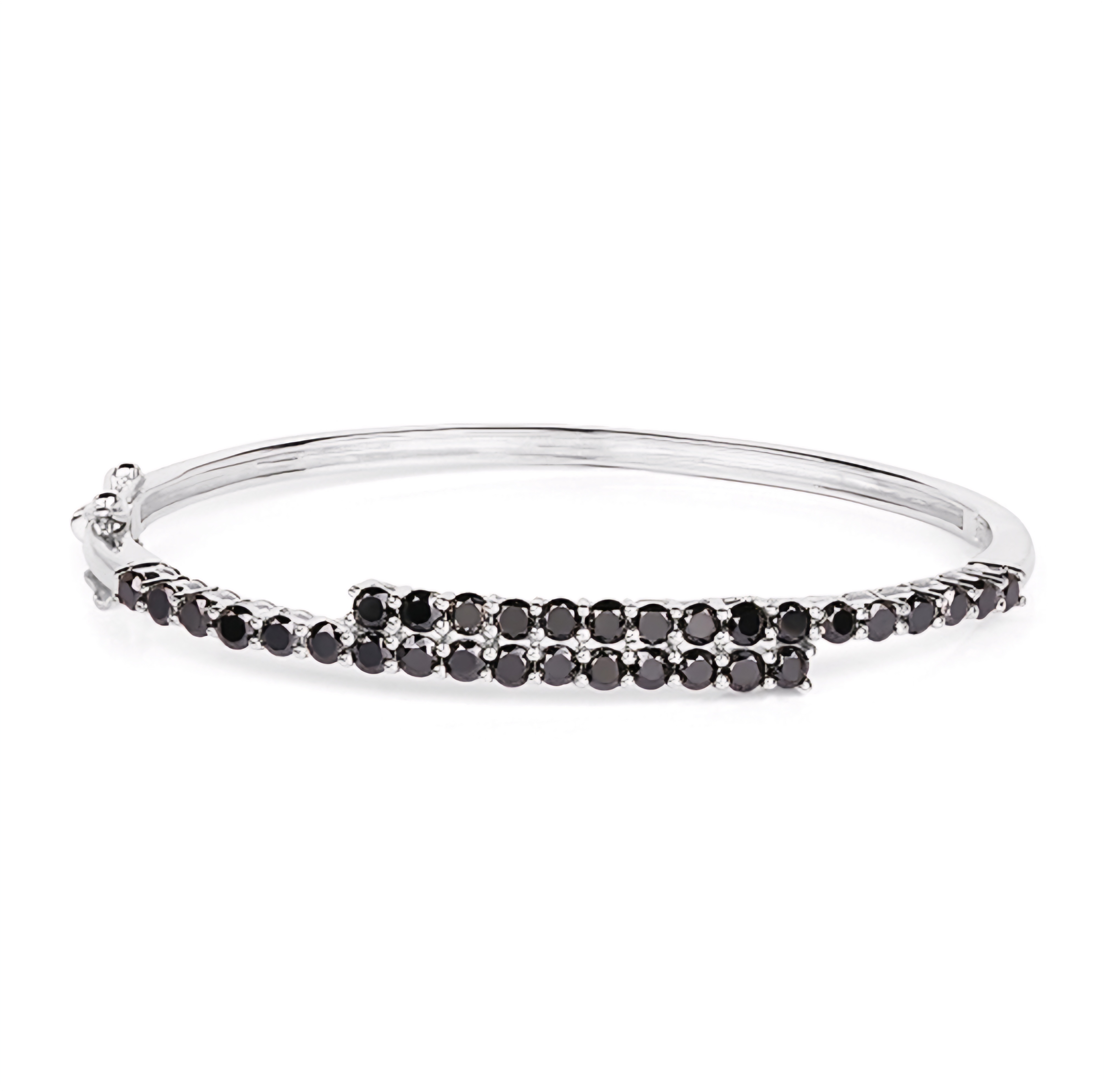 Elevate your style with the exquisite Black Diamond Bypass Bangle Bracelet in Rhodium over Sterling Silver 4.00ctw. Crafted with precision and elegance, this bracelet effortlessly blends traditional charm and contemporary design. Adorned with mesmerizing black diamonds, totaling 4.00 carats, it sparkles and shines on your wrist, leaving a lasting impression wherever you go. The sleek rhodium overlay enhances the silver, creating a captivating contrast that will instantly enhance any ensemble. Radiate confidence and sophistication with this luxurious accessory, fulfilling your desire for indulgence and refinement.