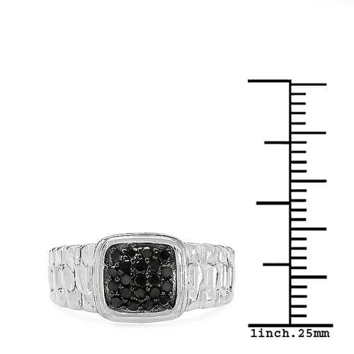 This ring features a square cluster of black diamonds, each approximately 1.3mm, set closely together to create a solid, textured surface. The dark tone of the diamonds gives the ring a subtle, matte-like depth with minimal flash, keeping the look refined and controlled.
