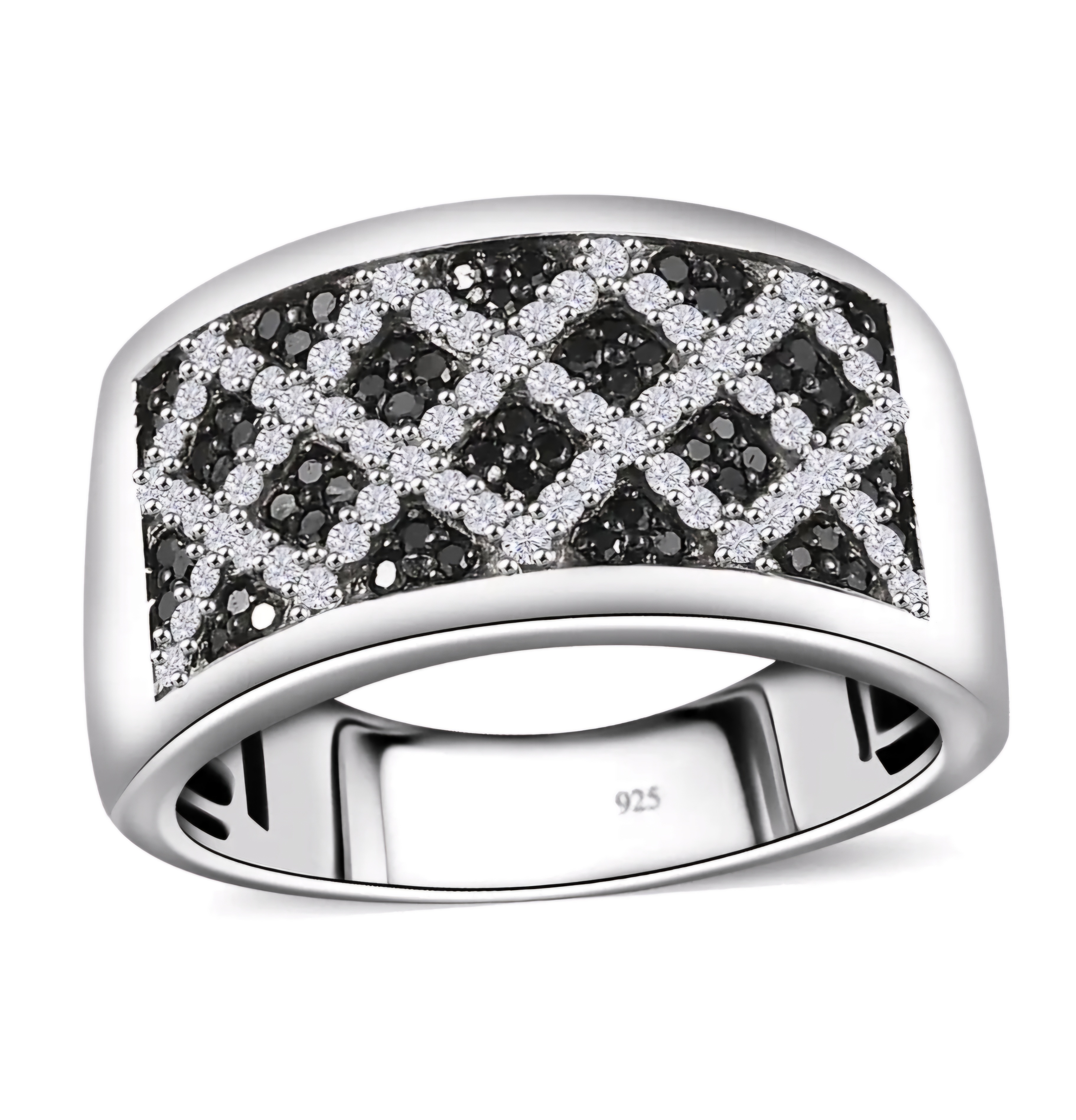 Elevate your style with this exquisite Black & White Diamond Cluster Band Ring In Black/White Rhodium over Sterling Silver 0.75ctw. The mesmerizing contrast of black and white diamonds creates a striking and sophisticated look. Crafted with precision and attention to detail, this luxurious ring is sure to make a statement wherever you go. Treat yourself or a loved one to the ultimate indulgence with this stunning piece.