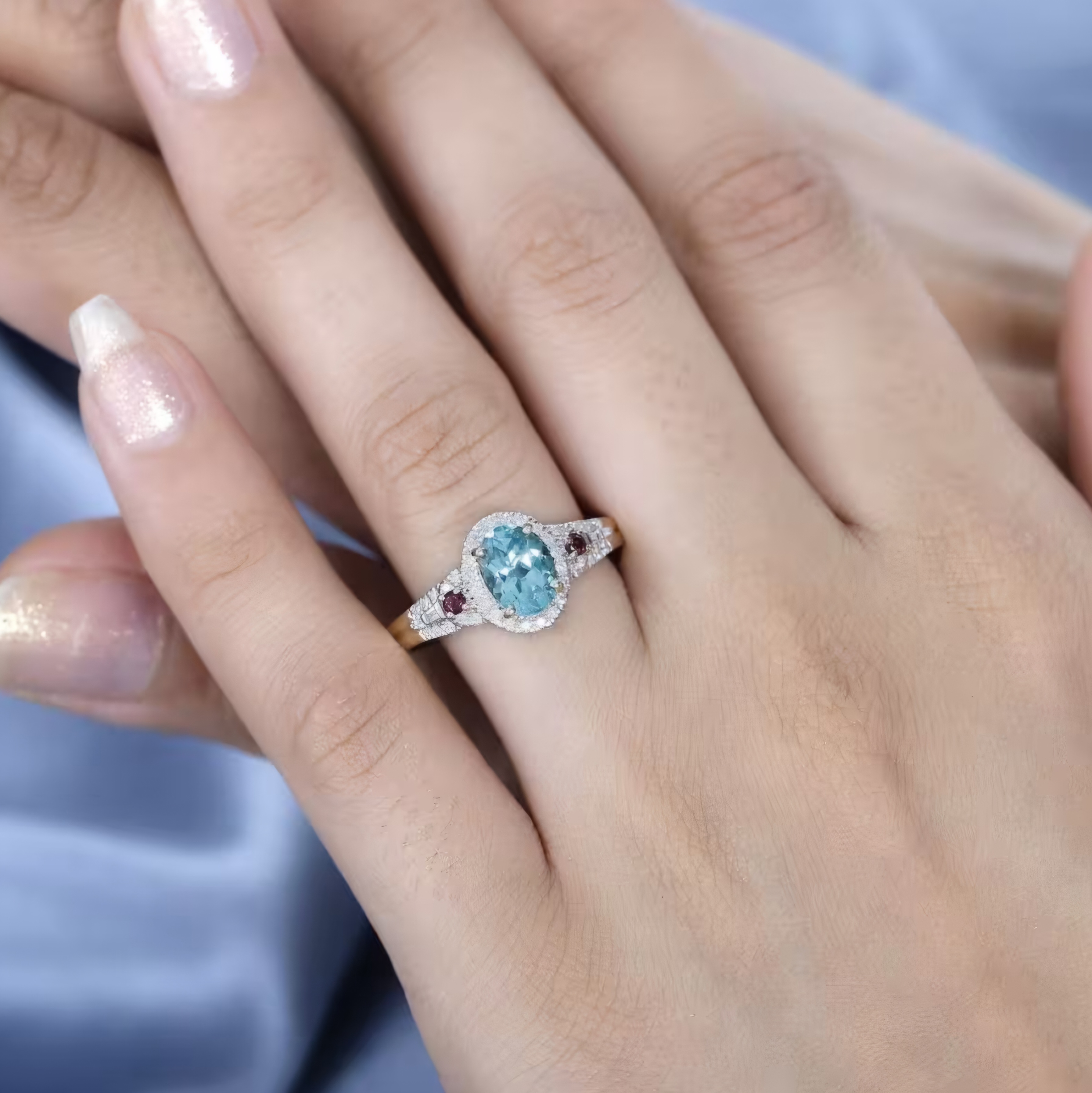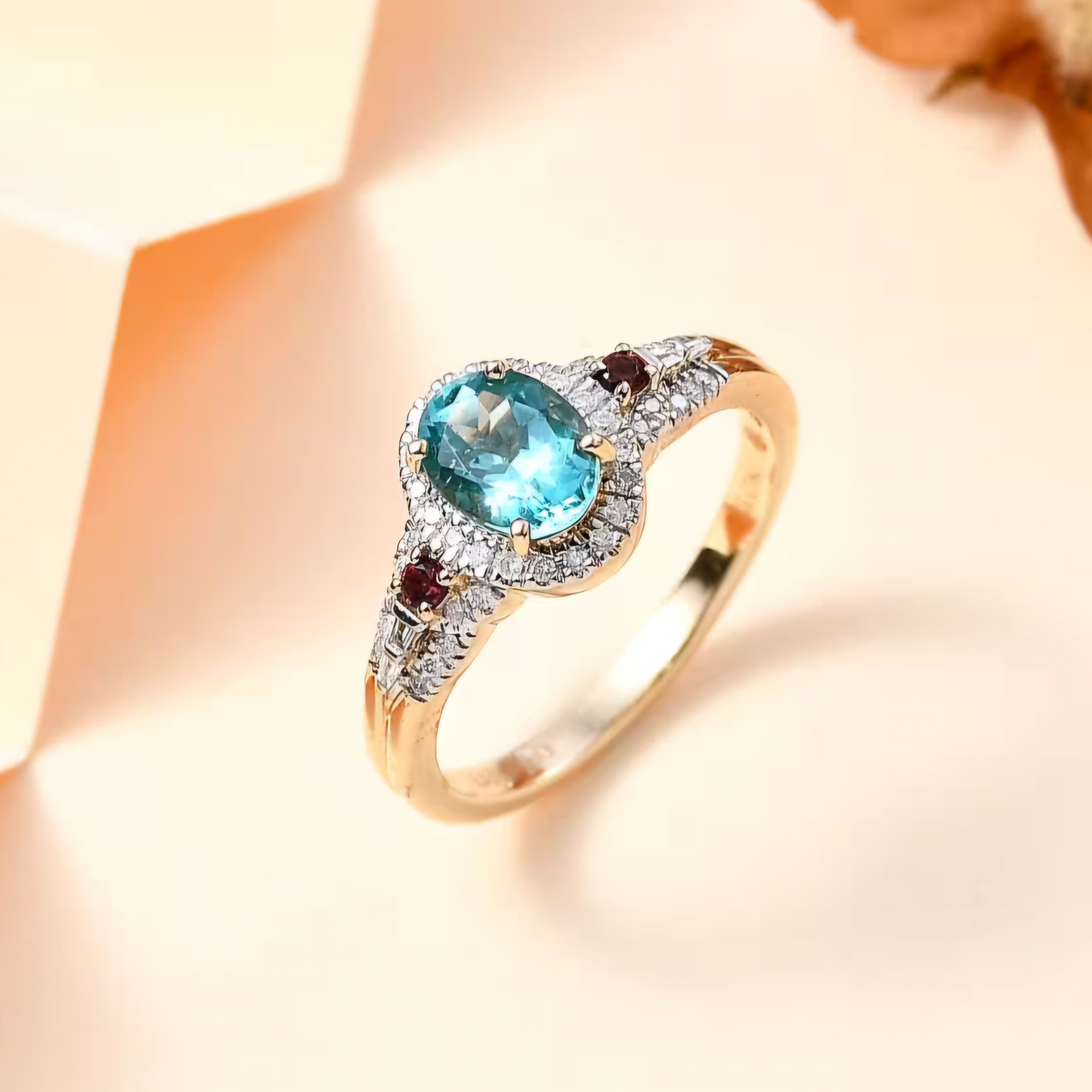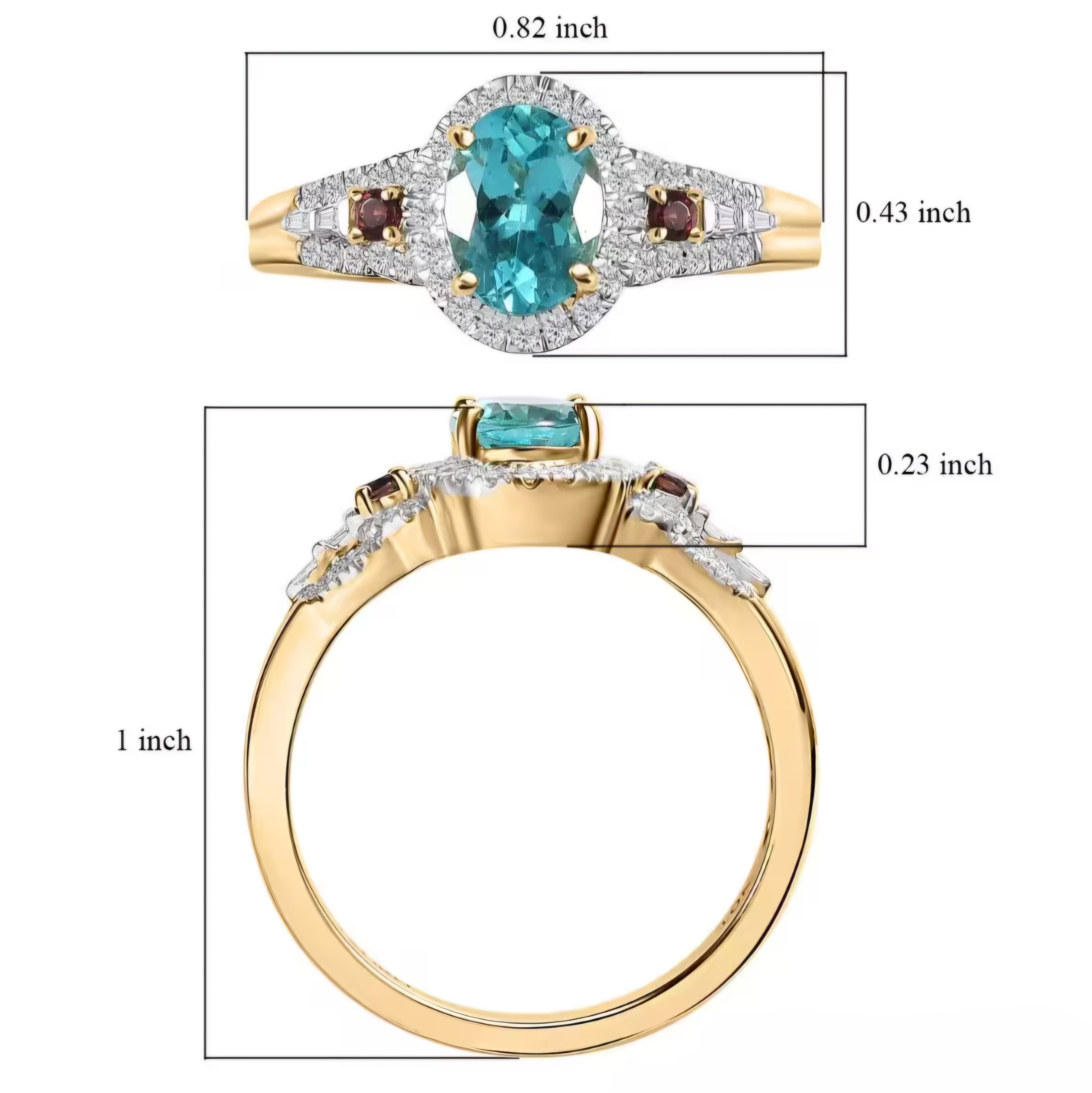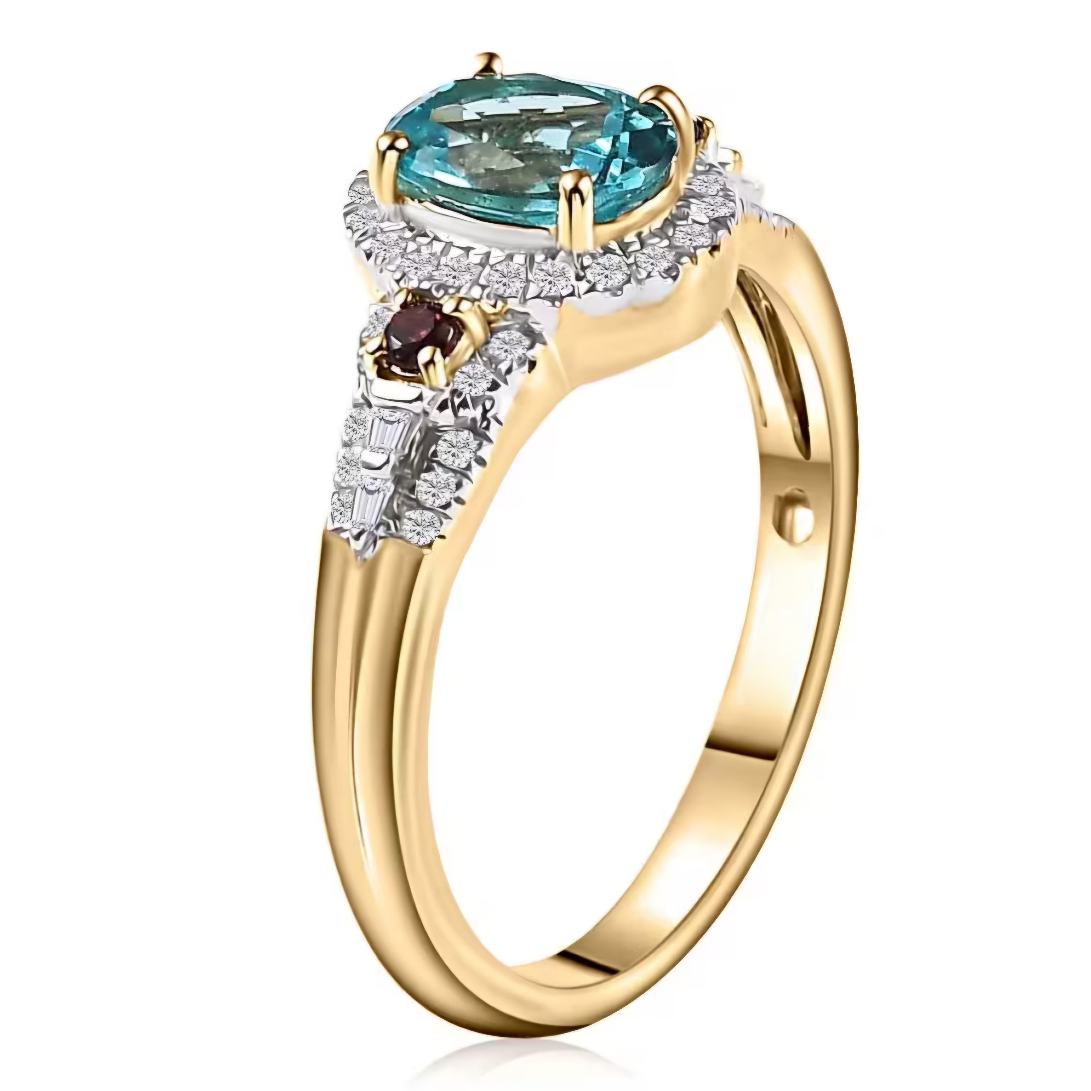 Elevate your jewelry collection with this exquisite Blue Apatite, Rubellite Tourmaline, and Diamond Halo Ring in 10K Yellow Gold. The vibrant blue and pink gemstones are accented by sparkling diamonds, creating a stunning contrast that is sure to turn heads. With a total carat weight of 1.50, this ring is the perfect piece for any occasion.