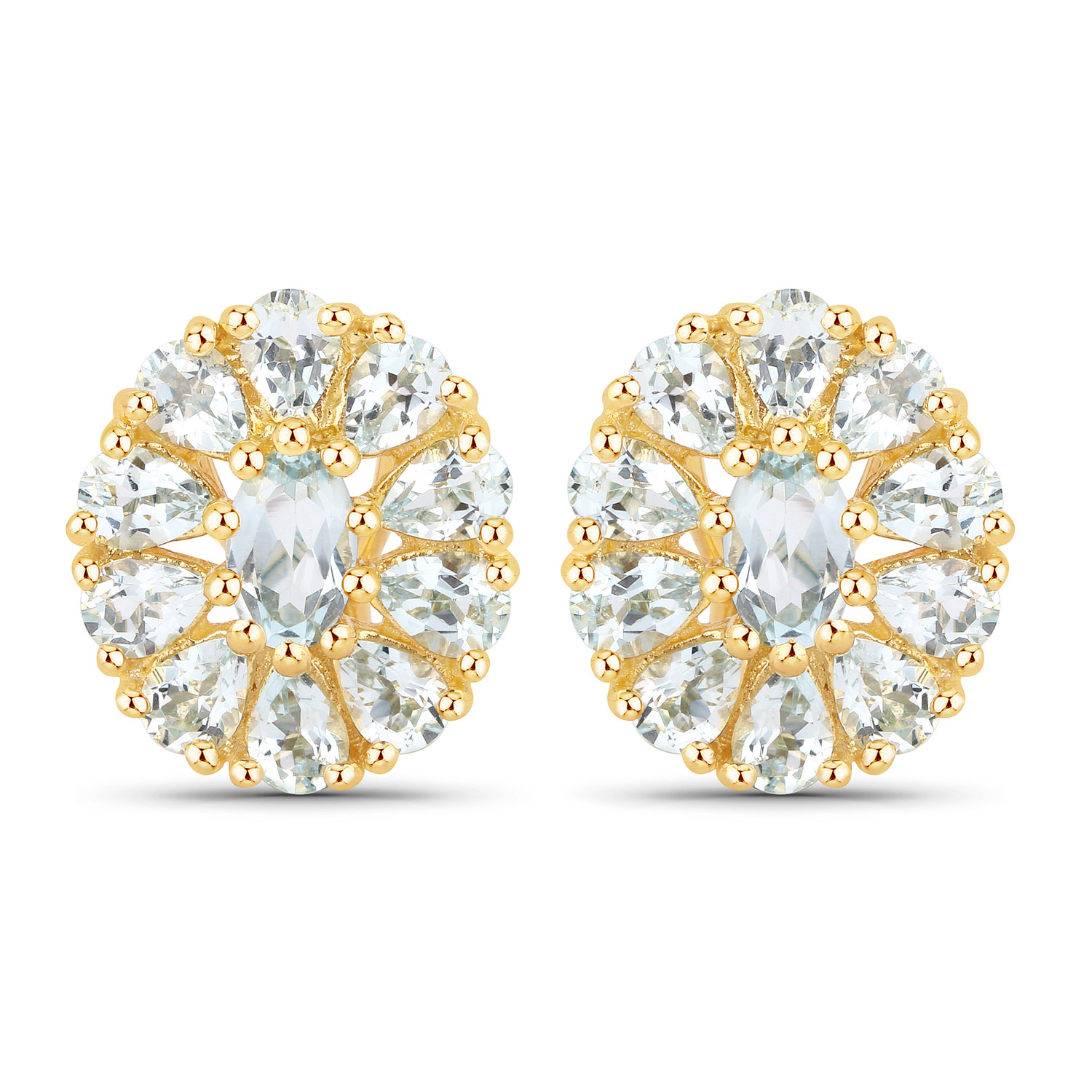 These earrings feature a combination of pear and oval-cut sky blue topaz, including approximately 4x3mm pears and 6x4mm ovals, arranged in a rounded, floral-inspired layout. The mix of shapes creates depth while allowing light to reflect across multiple facets, enhancing the natural clarity of the stones.