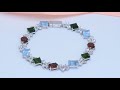 Presenting a piece that sings of luxury and elegance: a bracelet adorned with stunningly natural Blue Topaz, Garnet, Chrome Diopside & White Zircon, intricately housed in solid 925 Sterling Silver and enhanced with a Rhodium coating. Boasting a total weight of 18ctw, this dazzling accessory is an amazing way to show off your love for natural colored gemstones. Tailor this piece to your own taste with the choice of Rhodium, 18K Yellow Gold Over or 18K Rose Gold Over finishes, adding a personalised touch to your luxurious ensemble. This bracelet promises beauty and sophistication in equal measure for the discerning jewelry lover.