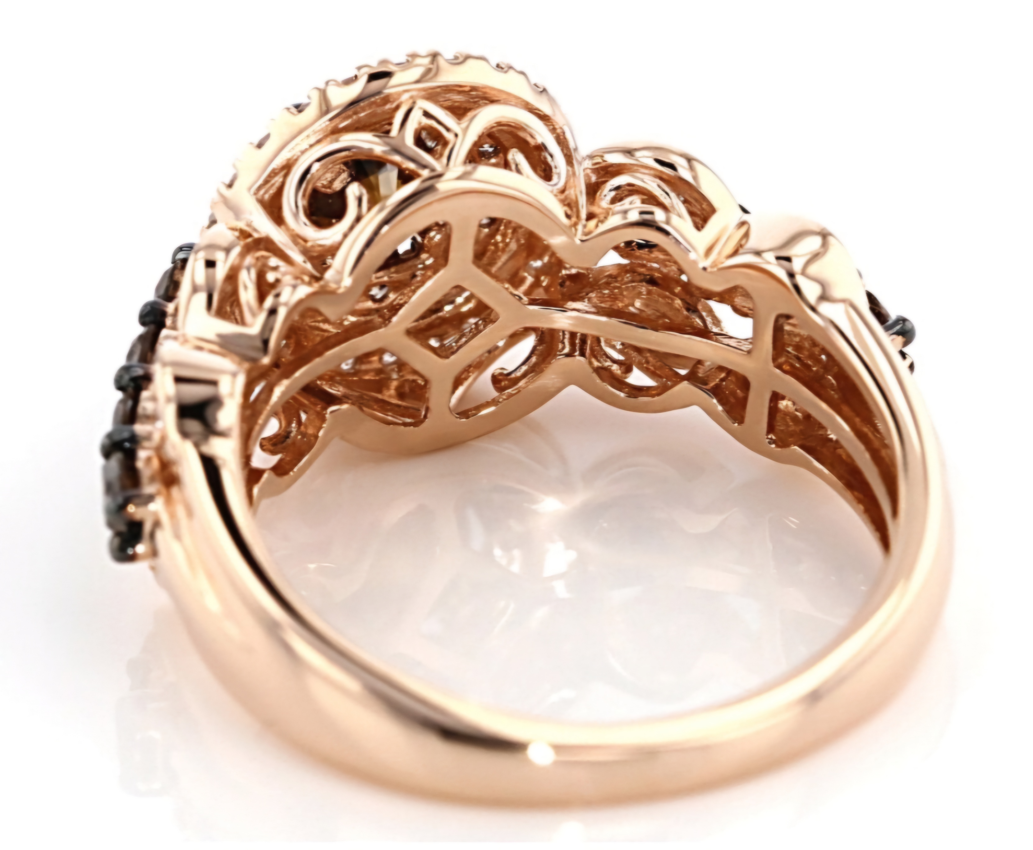 I was looking for something different, and this ring is perfect! The champagne diamond in the center is absolutely beautiful, and the rose gold setting really makes it pop. The white diamonds in the halo add a ton of sparkle, too. It's a real statement piece, but it's not too over the top. I've gotten so many compliments on it. It's even more gorgeous in person!