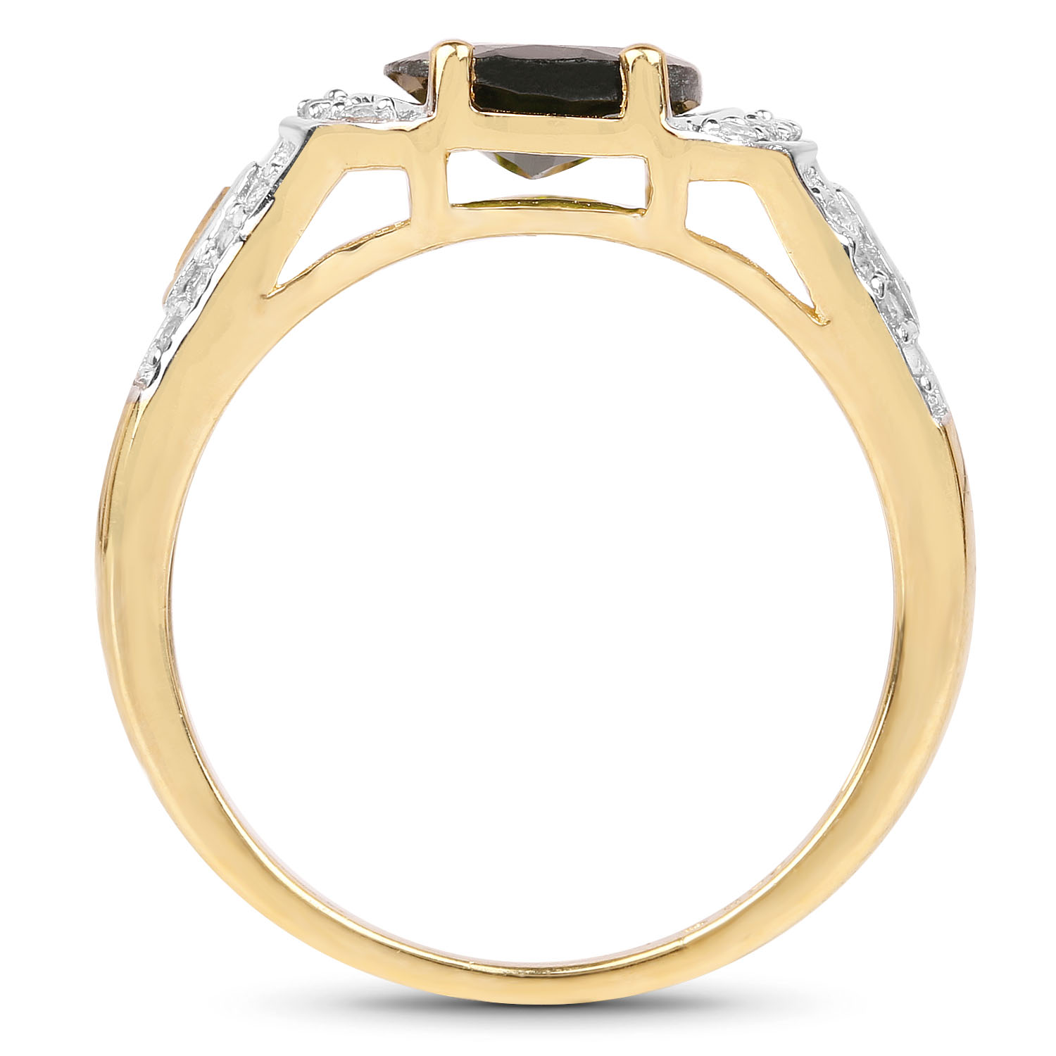 White topaz is set along the shoulders and around the center, adding brightness and contrast that elevates the overall brilliance. Finished in 18K yellow gold over sterling silver, the warm setting complements the насыщated green tone while maintaining a smooth, polished appearance.