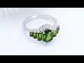 Treat yourself to this lavishly designed Chrome Diopside and White Zircon Ring, sure to be the star of any jewelry ensemble. An exceptionally large Oval Chrome Diopside is the main attraction, nestled within a setting of Rhodium-plated Sterling Silver. Bringing further glamour to the piece are Baguette Chrome Diopsides, and a generous sprinkling of Round White Zircon Accents, illuminating the ring with a lustrous shine. This piece, with a 2.2ctw, is thoughtfully designed and perfect for those who appreciate unique luxury jewelry.