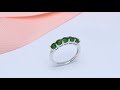 Elevate your jewelry game with this natural Chrome Diopside Round Five Stone Band Ring In Rhodium Over Sterling Silver. Sparkling round Chrome Diopside stones adorn the sleek band, creating a stunning luxurious look. As the perfect addition to any stacking or layered look, this ring is a must-have for any woman's collection. The rich emerald green color and simple design make this ring a timeless piece, adding a touch of elegance to any outfit.