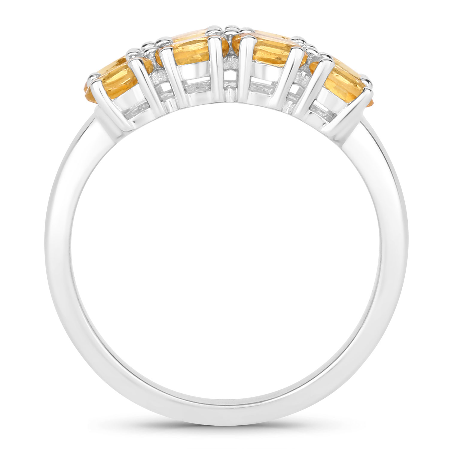 This ring features rows of oval-cut citrine, each measuring approximately 4x3mm, offering a consistent golden-orange tone across the design. The stones are arranged side by side to create a smooth, continuous look with natural light reflection.