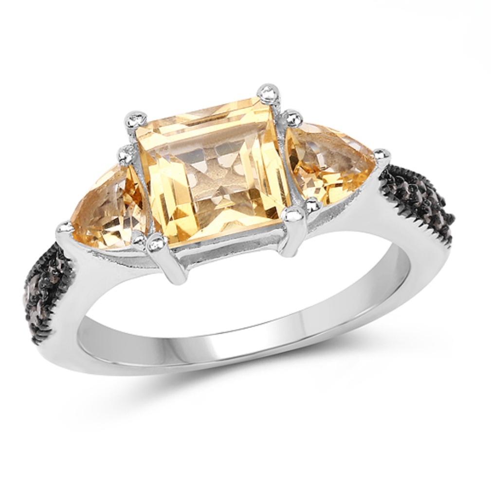 Embark on a journey of opulence with the Citrine & Champagne Diamond Three Stone Ring in Rhodium over Sterling Silver 2.67ctw. Witness the magnificence of the captivating citrine, believed to possess exhilarating energy and invigorating warmth. The luxurious trio of stones, complemented by dazzling champagne diamonds, evokes a sense of refined beauty and grandeur. Expertly crafted with impeccable artistry, the rhodium over sterling silver band accentuates the brilliance of the gemstones, elevating this ring to an exquisite work of art. Ignite your passion for luxury with this remarkable statement piece that effortlessly epitomizes grace and prestige.