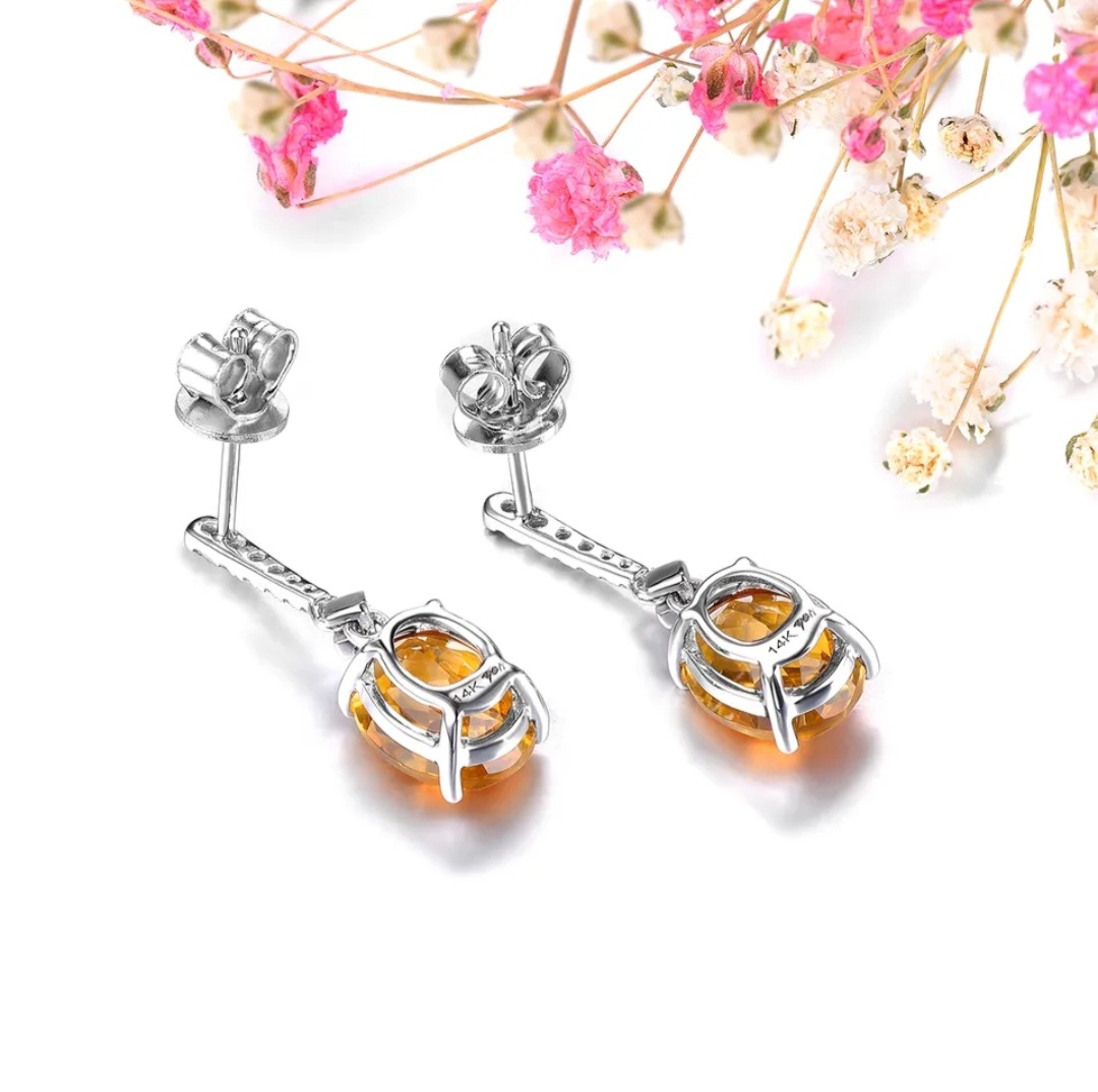 Elegance and luxury meet in these stunning Citrine & Diamond Drop Earrings. Set in solid 14k White Gold, these earrings have an exquisite weight of 3.50ctw. The beautiful Citrine gemstones evoke warmth and vibrancy, while the sparkling Diamonds exude a classic beauty that never fades. With a charming drop design, they dangle beautifully, adding a touch of elegance to any look. These earrings make an exceptional statement of refined taste and sophistication.