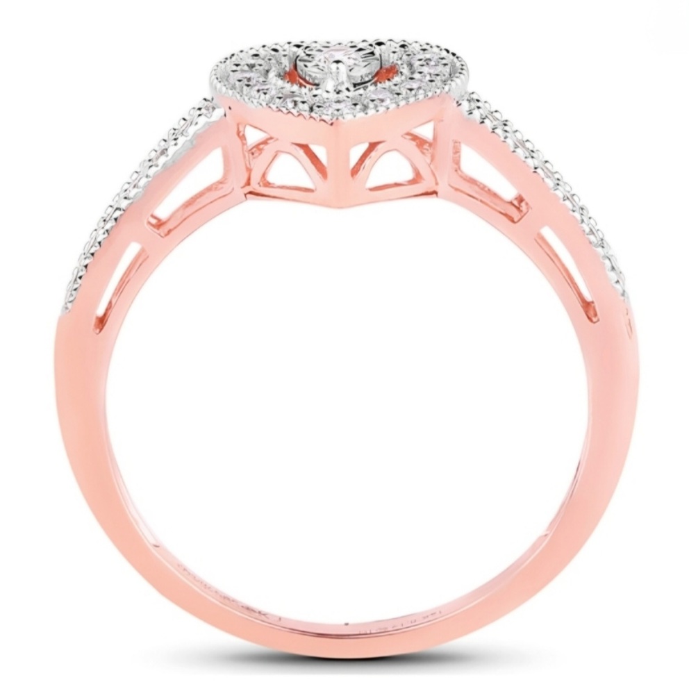 Elevate your love story with our Diamond Heart Shaped Halo Wedding Ring in Solid 14k Rose Gold. This romantic design features natural round white diamonds set in white rhodium, giving it an elegant and timeless appeal. The milgrain edge adds a delicate touch, making it the perfect symbol of your everlasting commitment.