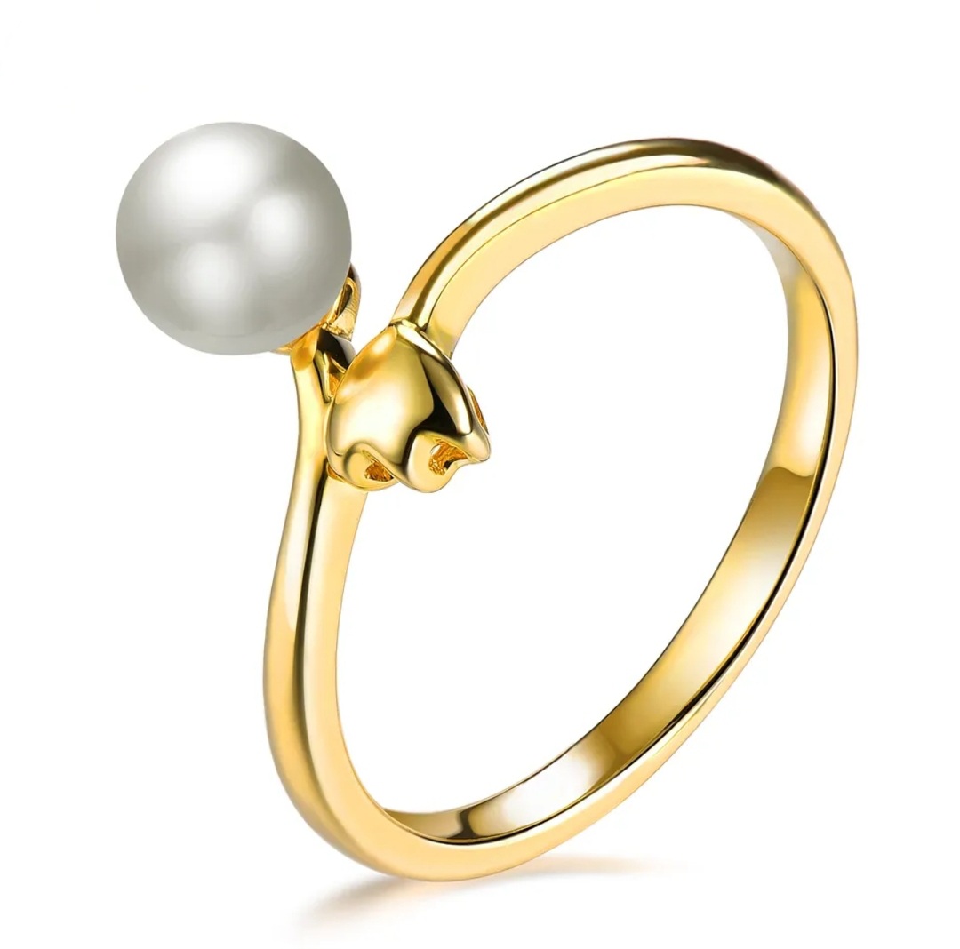 Treat yourself to this aesthetically pleasing, cute Freshwater Pearl Bypass Ring. Gently resting on a Sterling Silver base lavishly coated in 18K Yellow Gold, a luminescent freshwater pearl act as beautiful focal point. This dainty piece beautifully embodies the essence of minimalist jewelry by offering a simple yet elegant look. It's perfect for adding a refined touch to your daily ensemble or to navigate the arena of an evening soiree with effortless grace.