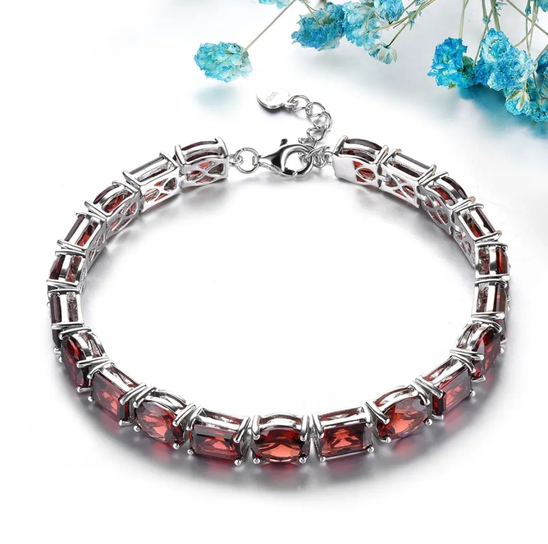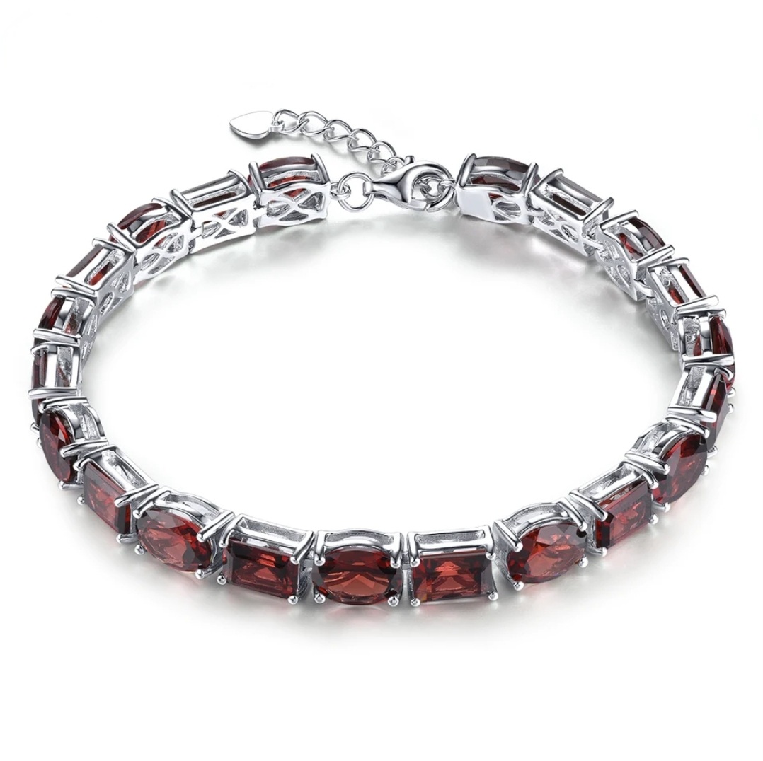Hey, fashion-savvy folks! Brace yourselves for the ultimate wrist candy – our Adjustable Garnet Bracelet in Rhodium over Sterling Silver. Designed for those who like to make a statement, this dazzling tennis bracelet showcases beautiful garnet stones that sparkle with every move. Its rhodium coating adds an extra dose of magic, ensuring long-lasting shine. And guess what? It's adjustable! Yep, you read that right. So, whether you're a petite princess or a bold fashionista, this bracelet is here to slay on your wrist!