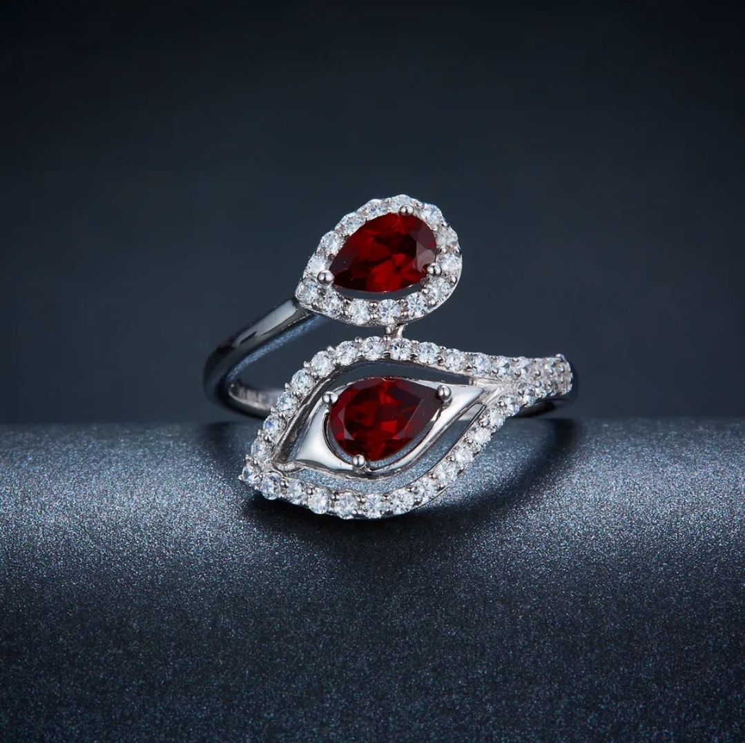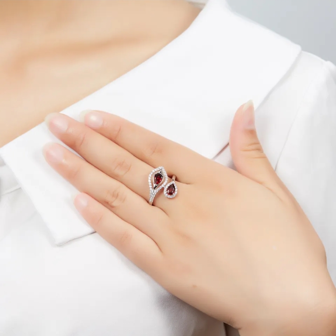 Get ready to fall in love with this pretty Garnet & White Zircon Bypass Ring! With its Rhodium-plated Sterling Silver band and elegant design, this ring is perfect for adding a touch of sophisticated style to any outfit. Take your look up a notch with this gorgeous piece of jewelry that's sure to turn heads.