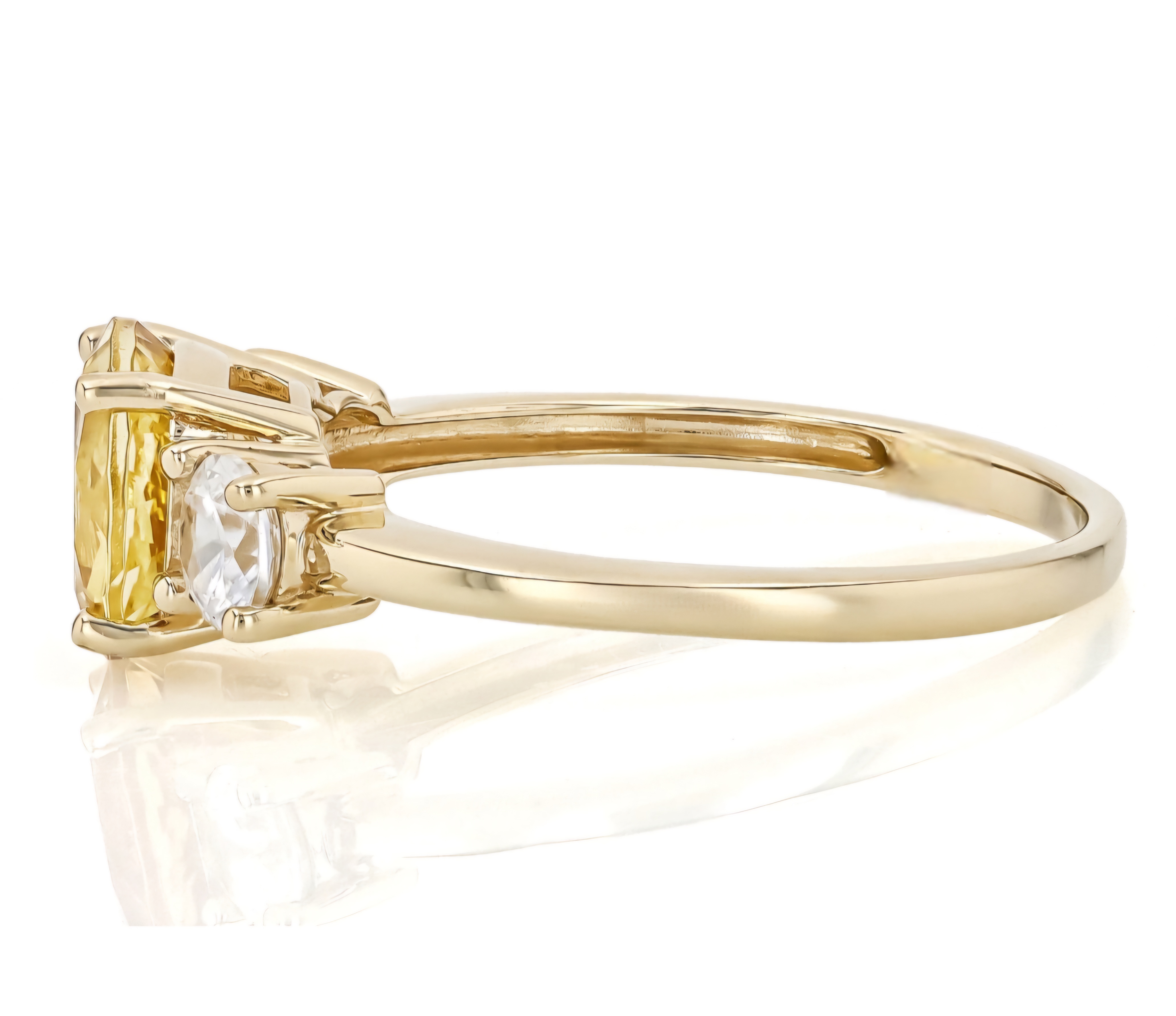 Elevate your jewelry collection with the exquisite beauty of the Heliodor & White Zircon Trilogy Ring In 10K Yellow Gold 2.70ctw. This luxurious piece features a stunning combination of heliodor and white zircon stones set in a shimmering yellow gold band. Make a statement with this truly elegant accessory.