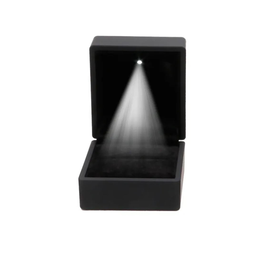 Introducing our LED Lighted Ring Box - the perfect way to showcase your engagement or wedding ring! The sleek design of the box is lined with soft velvet and features a built-in LED light to highlight your beautiful ring. It's the ideal way to add a touch of elegance to your special moment.