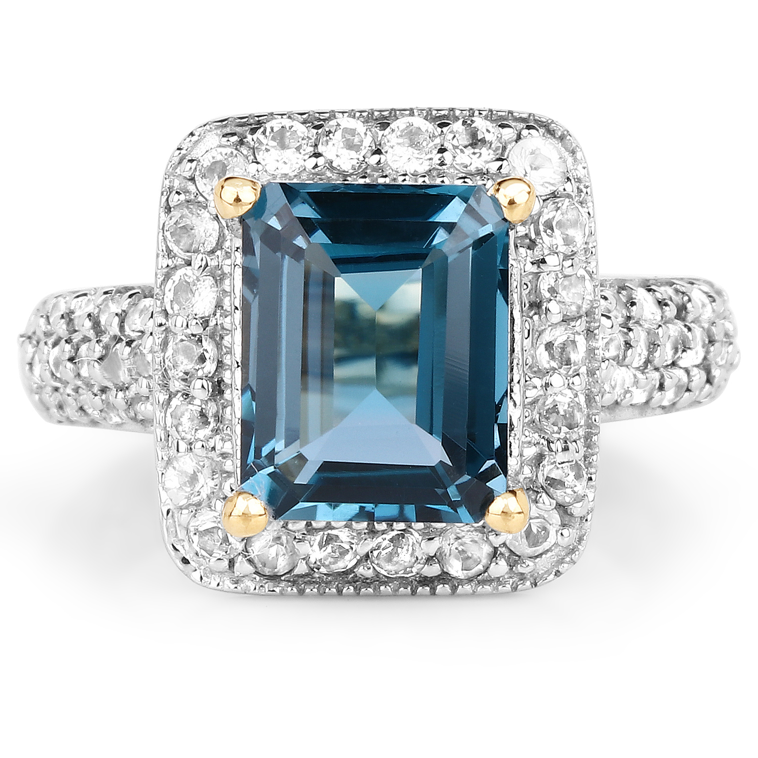 The shoulders are fully set with additional white topaz, extending the brilliance along the band and giving the ring a balanced, high-impact look from all angles.