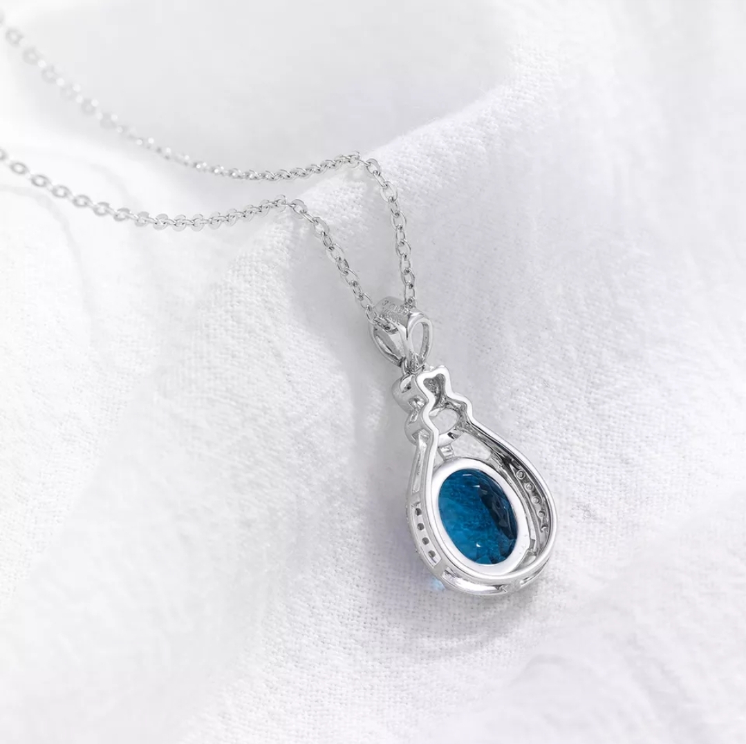 If you're looking for a piece of jewelry that's both sophisticated and eye-catching, this London Blue Topaz & Diamond Pendant Necklace in 14k White Gold 3.08ctw is sure to impress. The rich blue of the Topaz is perfectly complemented by the dazzling shine of the Diamonds, all set in gleaming White Gold. This necklace is versatile enough to wear with a variety of outfits, from casual to formal, making it a true investment piece.