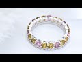 This eternity band ring features a beautiful mix of natural multi color Tourmaline rounds. Accenting them in an additional row you have natural White Zircon rounds. Crafted in solid 925 Sterling Silver with your choice in Rhodium over, 18K Yellow Gold over or 18K Rose Gold over.