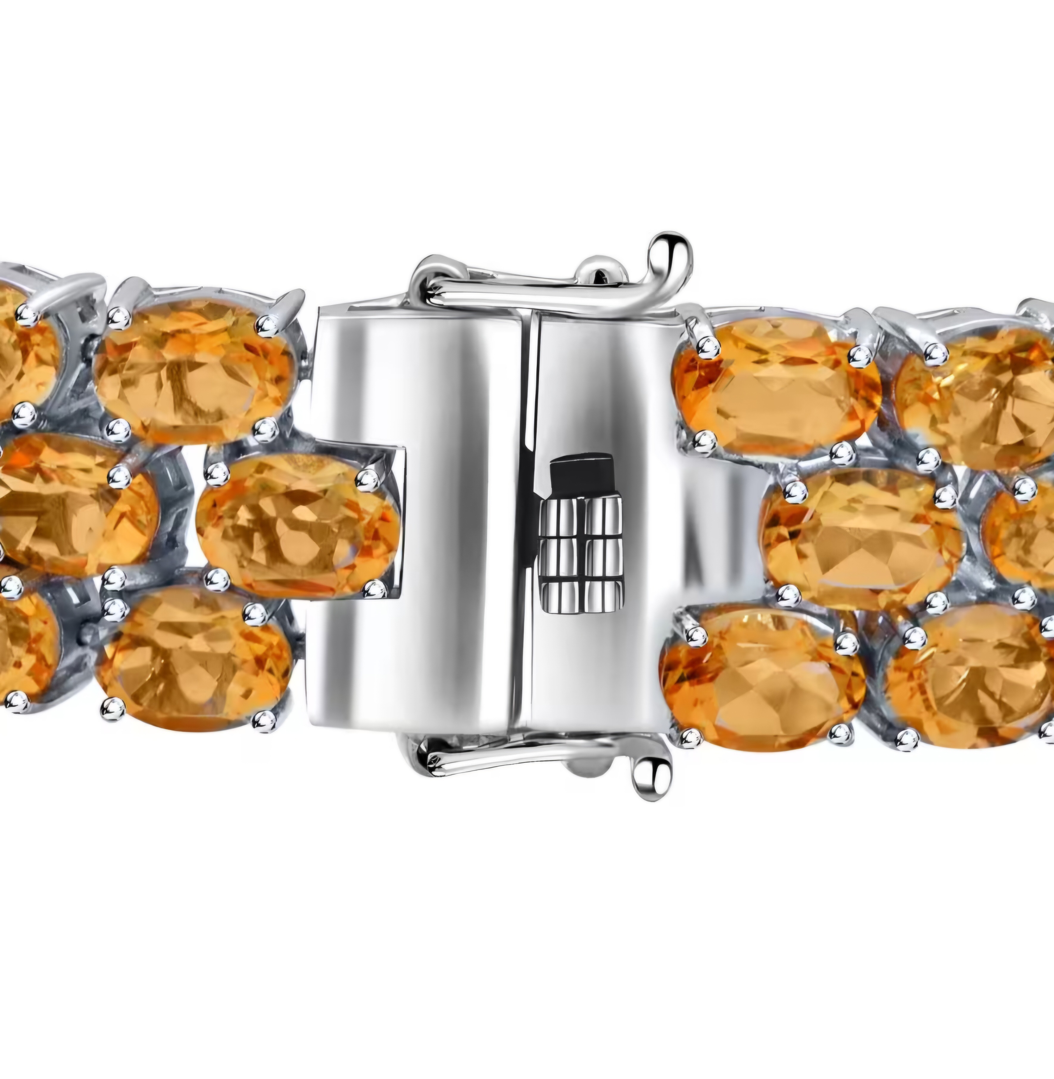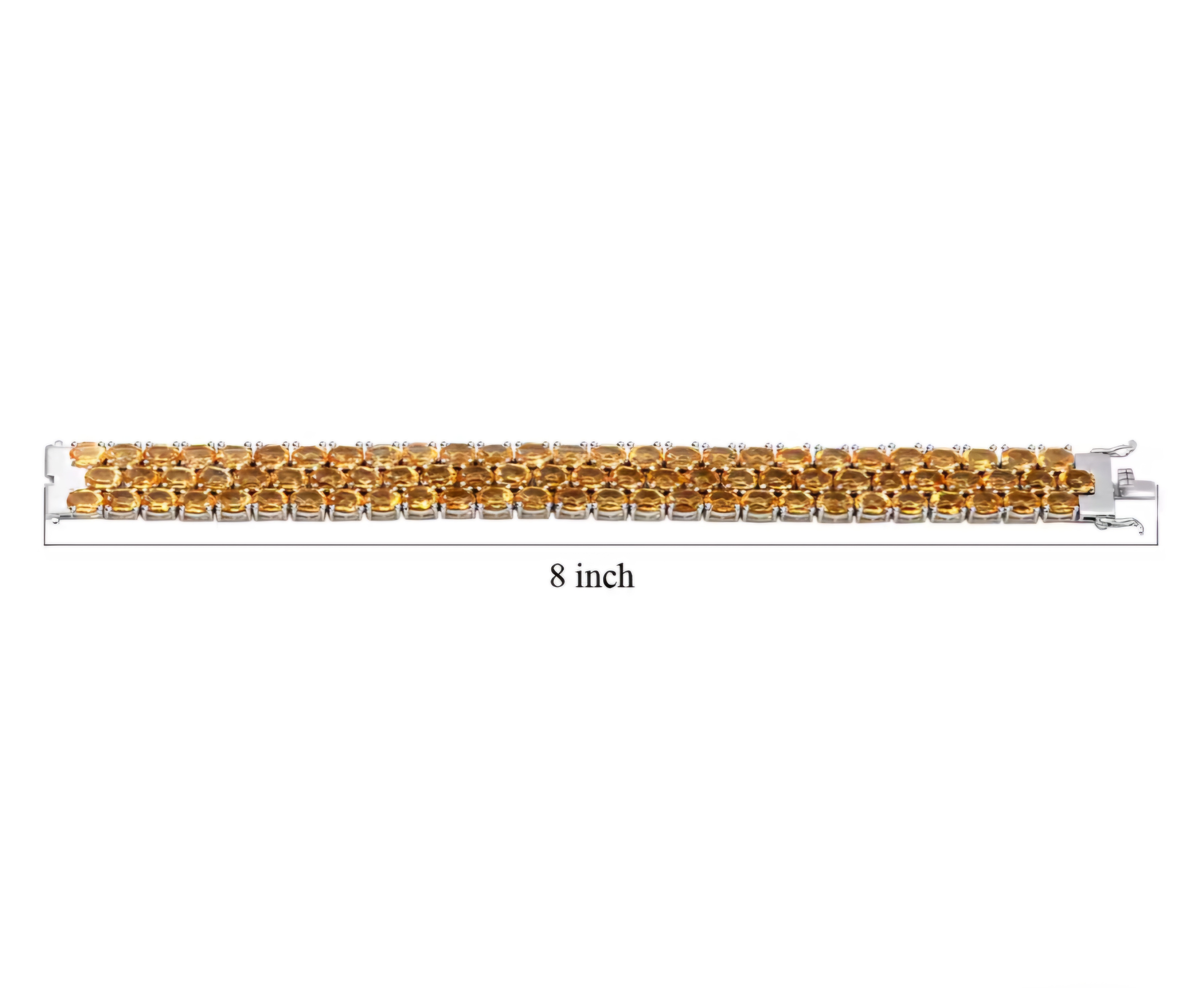Elevate your wrist game with our stunning Oval Citrine Triple Row Tennis Bracelet In Rhodium over Sterling Silver 58.25ctw. This luxurious piece features a dazzling display of oval citrine stones set in a triple row design, creating an eye-catching sparkle that is sure to turn heads. Crafted in rhodium over sterling silver, this bracelet is not only elegant but also durable and long-lasting. Perfect for adding a touch of glamour to any outfit, this bracelet is a must-have for any jewelry collection.