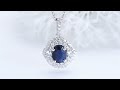 Introducing our Oval Sapphire & White Zircon Double Halo Necklace, a modern take on a classic double halo design. Crafted with delicate precision, this necklace combines sophistication and elegance effortlessly. The centerpiece, a dark rich blue natural sapphire, captures attention with its deep, mesmerizing hue. Set in rhodium over sterling silver, this 1.80ctw necklace shines bright against any outfit, making it a must-have accessory for a touch of timeless beauty.