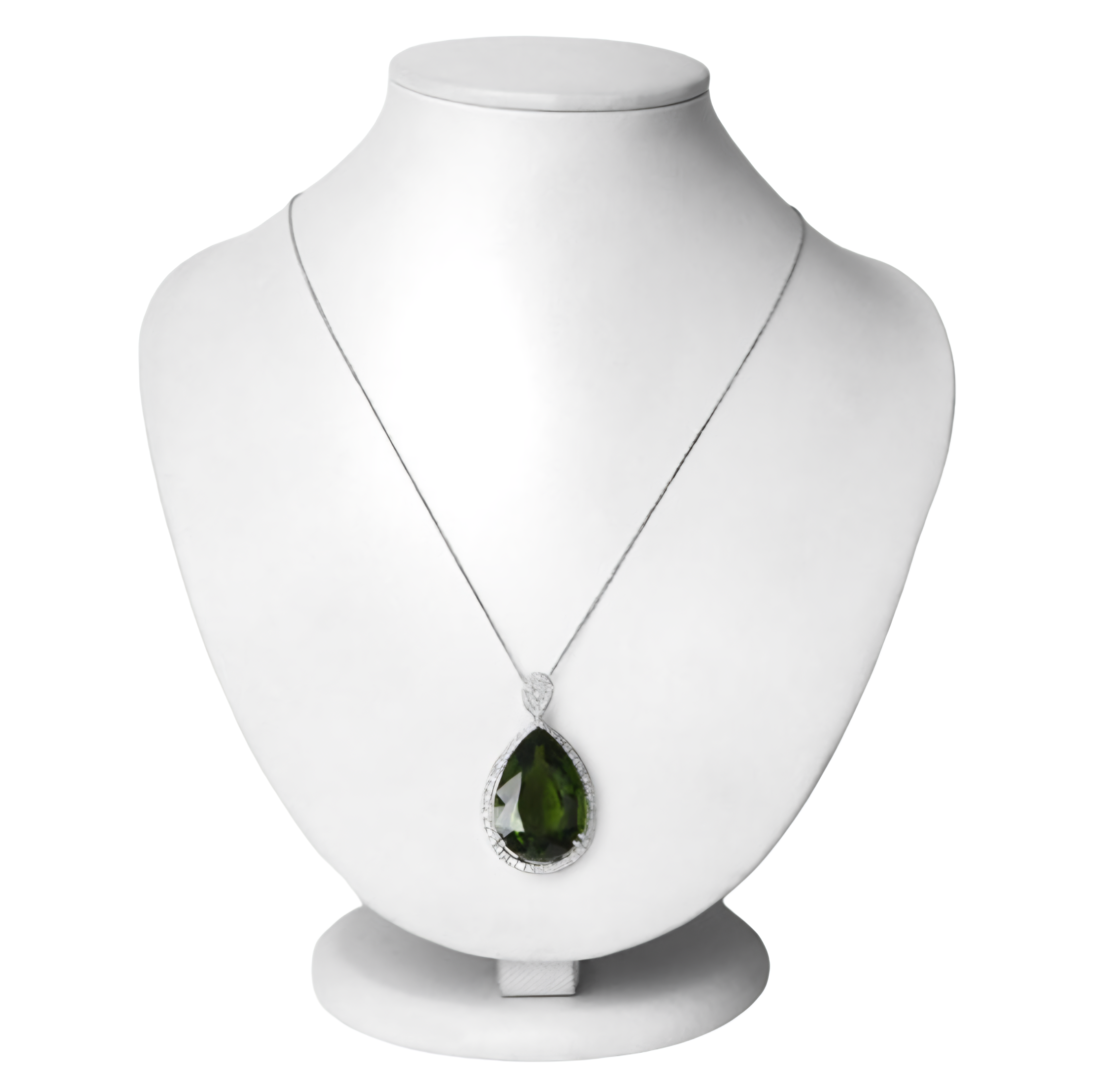 Make a bold and unforgettable statement with our Peridot & White Diamond Pear Halo Pendant Necklace from Gallery Gems.