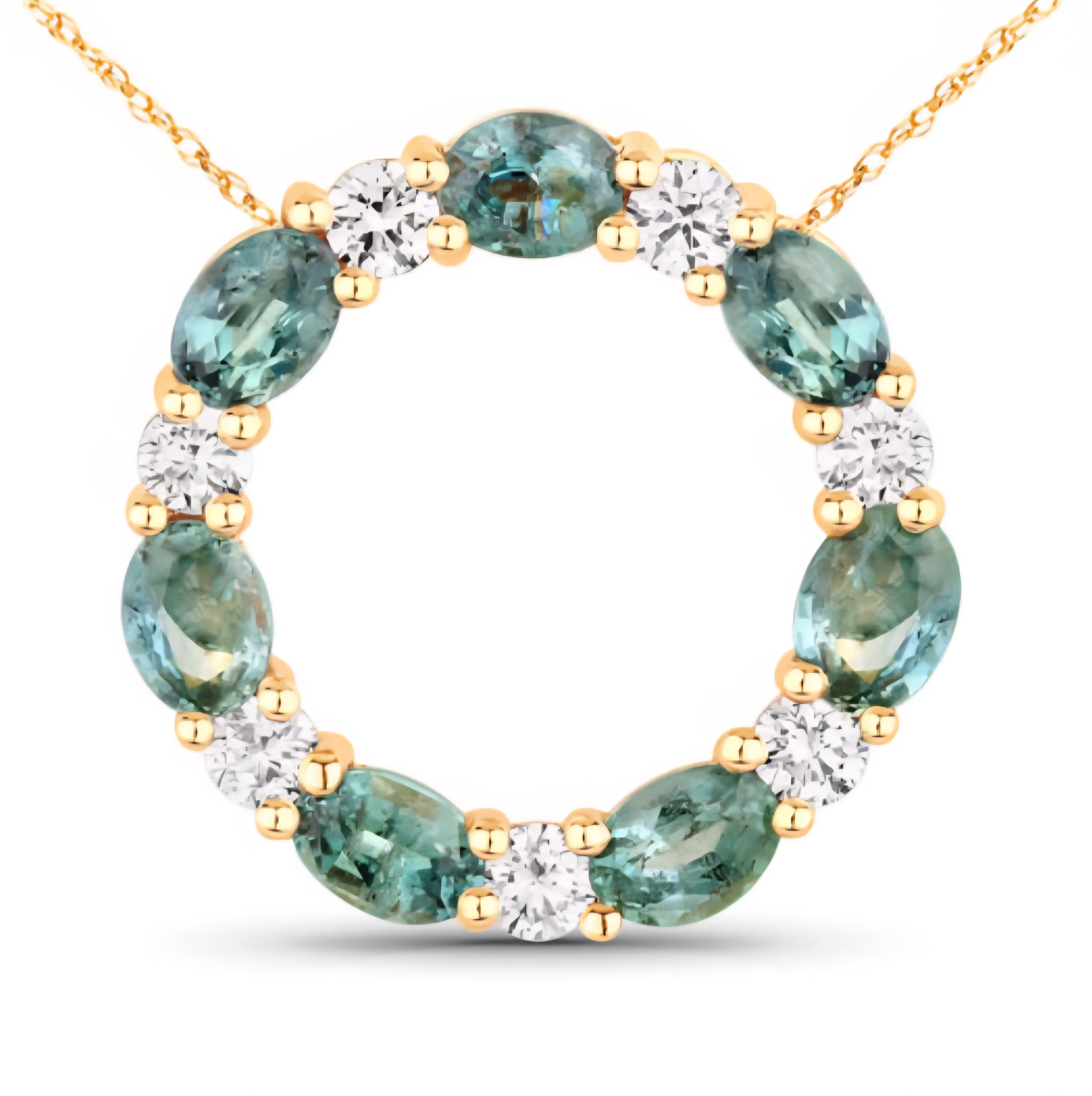 Elegant symmetry meets natural transformation. This Alexandrite and Diamond circle pendant necklace features alternating oval Alexandrites (0.91ctw) and brilliant white diamonds (0.21ctw, G–H, SI1–SI2) in a perfect open loop. Each Alexandrite reveals a remarkable color change from teal-green to reddish-violet, capturing light and motion in every glance.