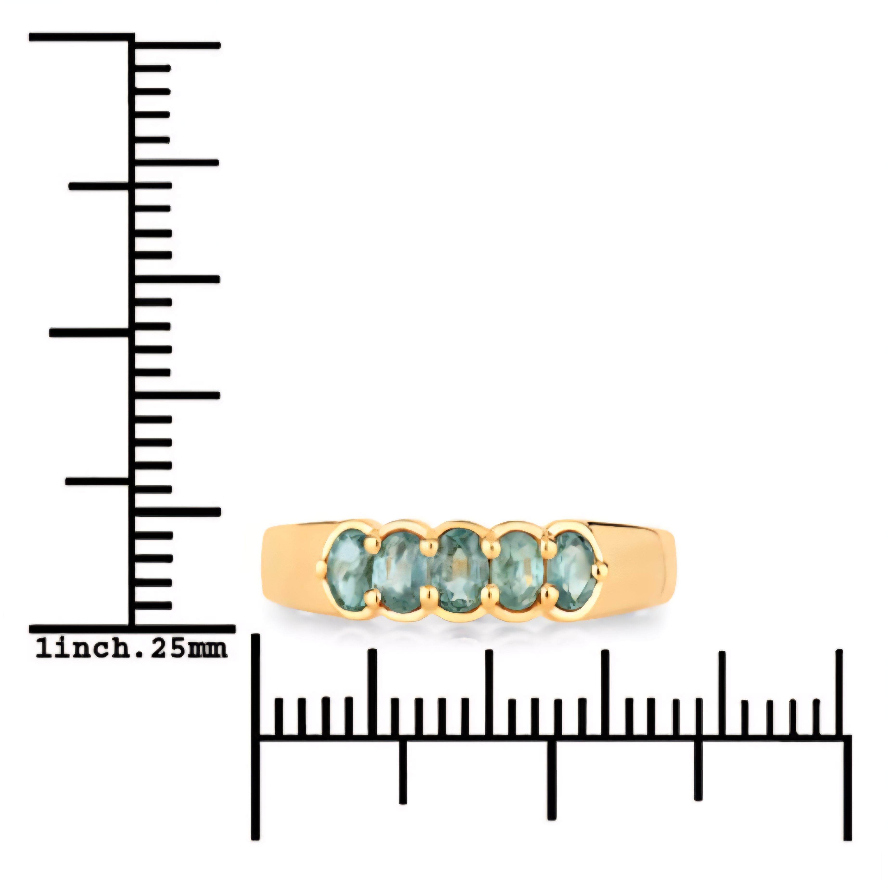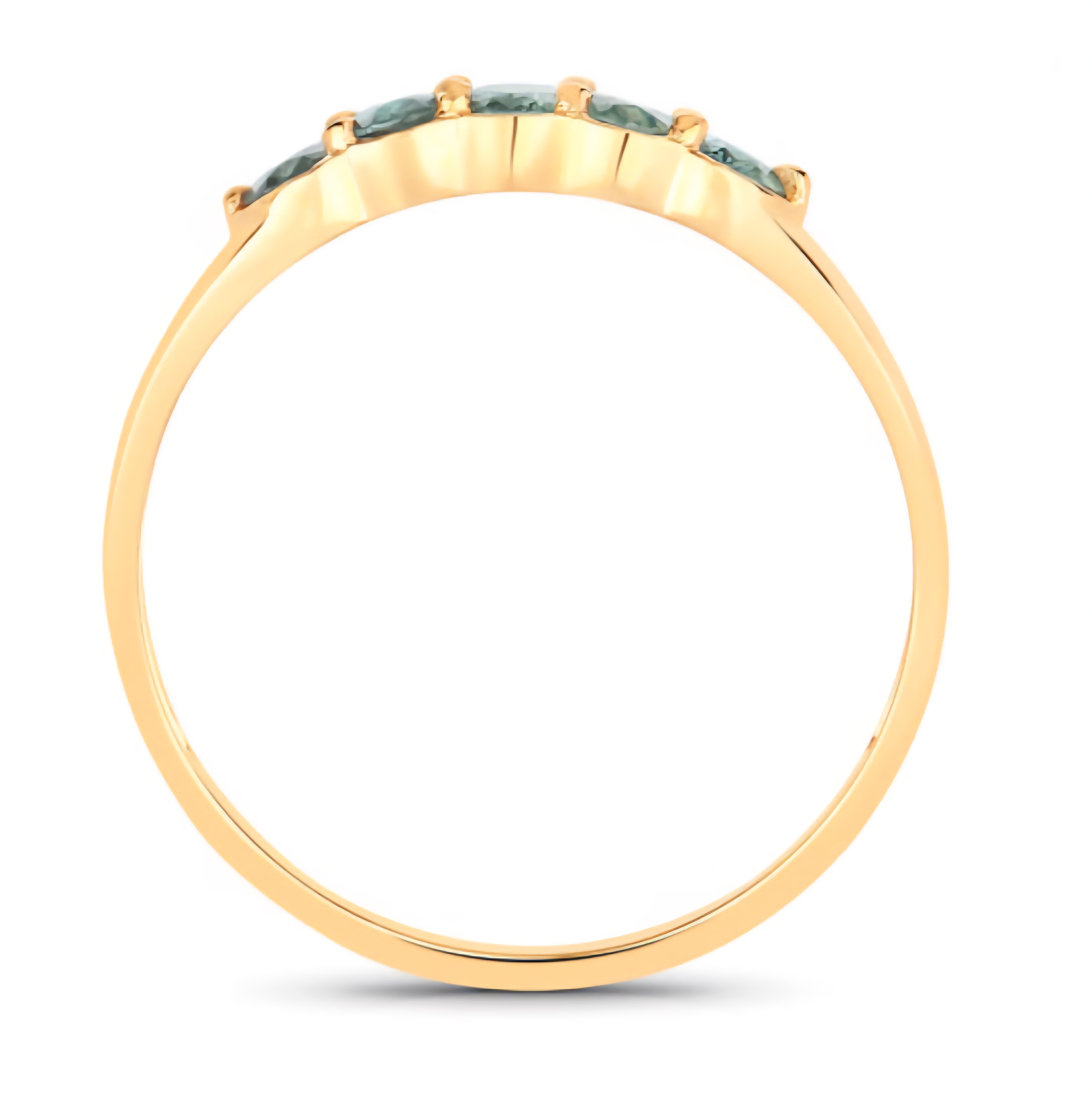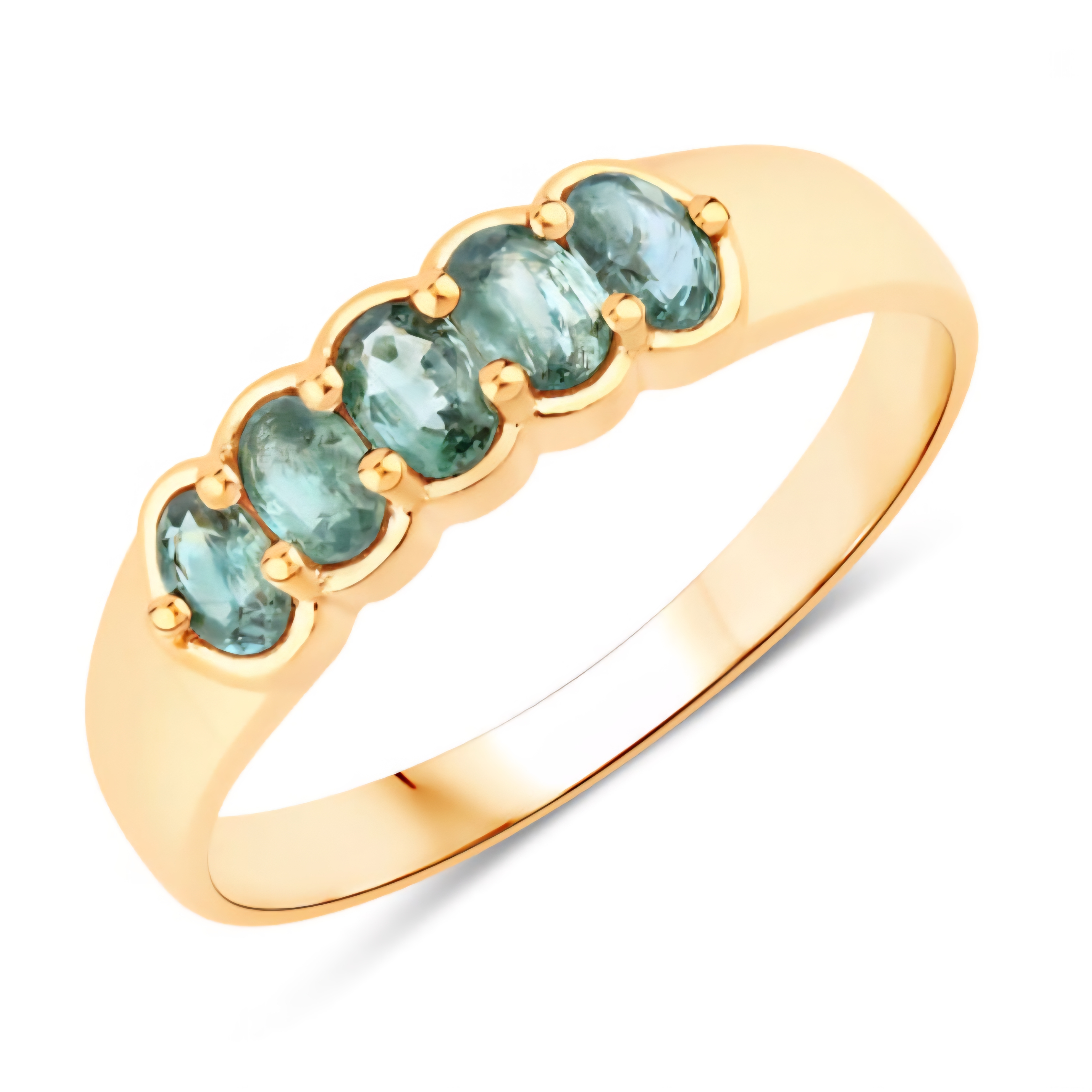 A sleek and elegant five-stone Alexandrite band ring, featuring oval-cut natural color-change Alexandrites (0.65ctw) that shift from cool green to deep red under different lighting. The stones are set in a smooth, minimalist solid 18K yellow gold band with warm tone and mirror polish. Perfect as a stand-alone statement ring or paired in a luxurious stack.
