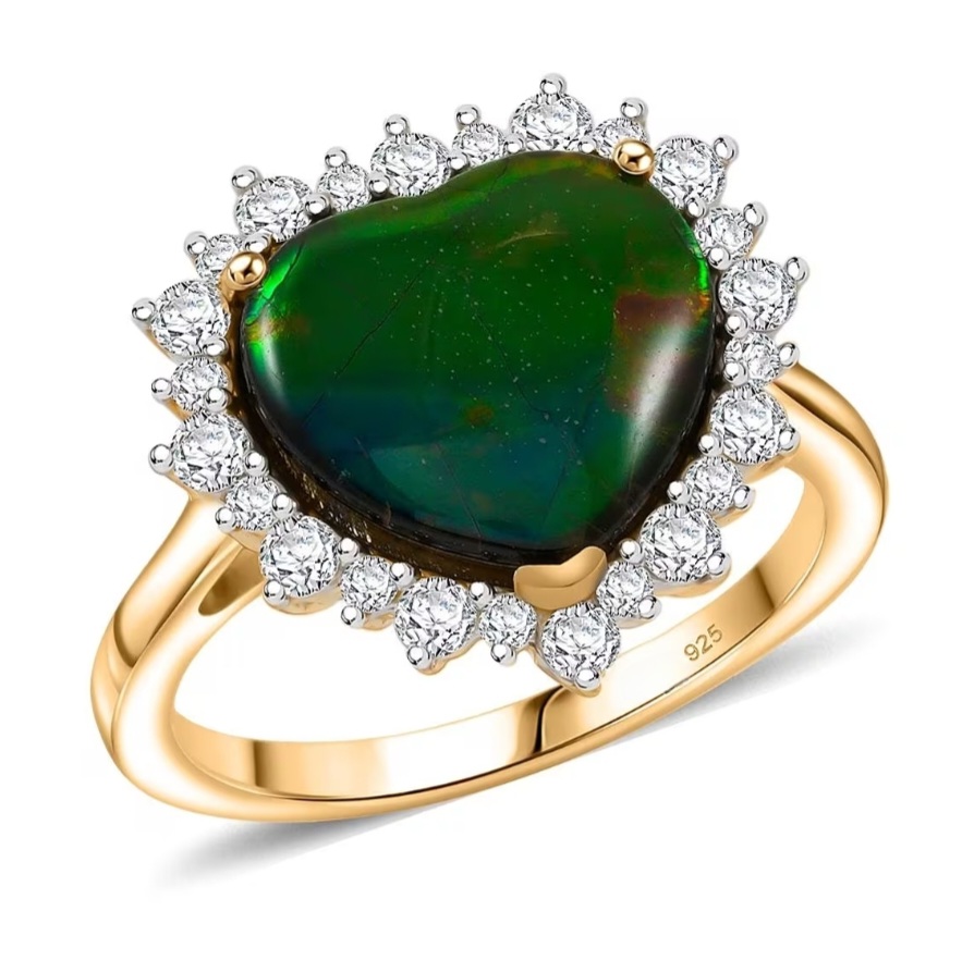 Crafted in solid 925 sterling silver, the design balances statement presence with comfortable wear. It’s a radiant heart-shaped ring that blends rarity, color, and modern elegance in a way only Ammolite can deliver.
