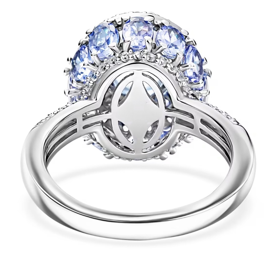 Crafted in solid 925 sterling silver and finished with rhodium plating, the bright white metal intensifies the cool tones of the aquamarine and tanzanite while highlighting the vibrant rubellite accents and brilliant zircon sparkle.