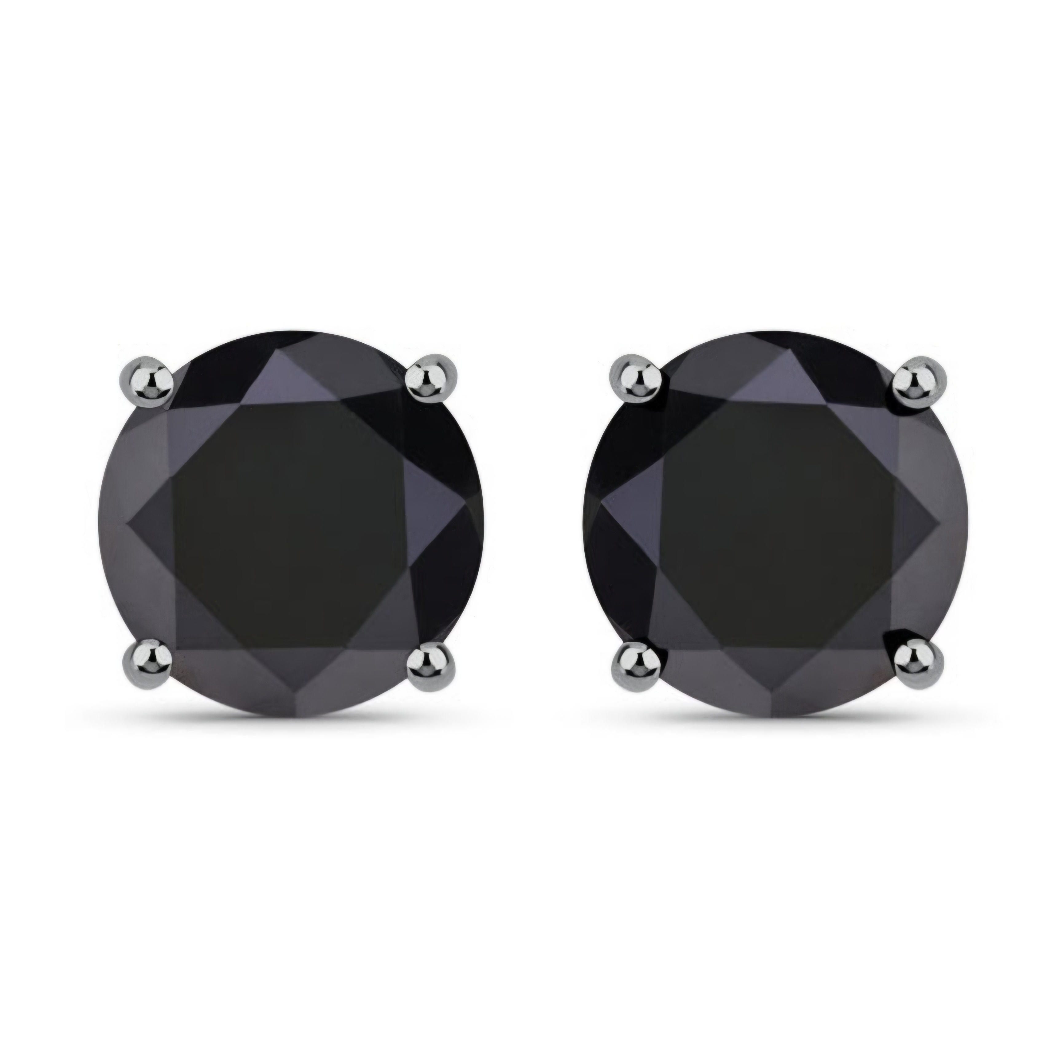 Embrace elegance and luxury with these Black Diamond stud earrings from Black Diamond. Crafted from 14k White Gold, each earring features a 7-7.5mm round natural Black Diamond set in Black Rhodium tipped prongs, creating a classic and timeless look. With a total carat weight of 3.84ctw, these earrings are a must-have for anyone who appreciates fine jewelry. Whether you're shopping for yourself or looking for the perfect gift, these unisex earrings are sure to make a statement.