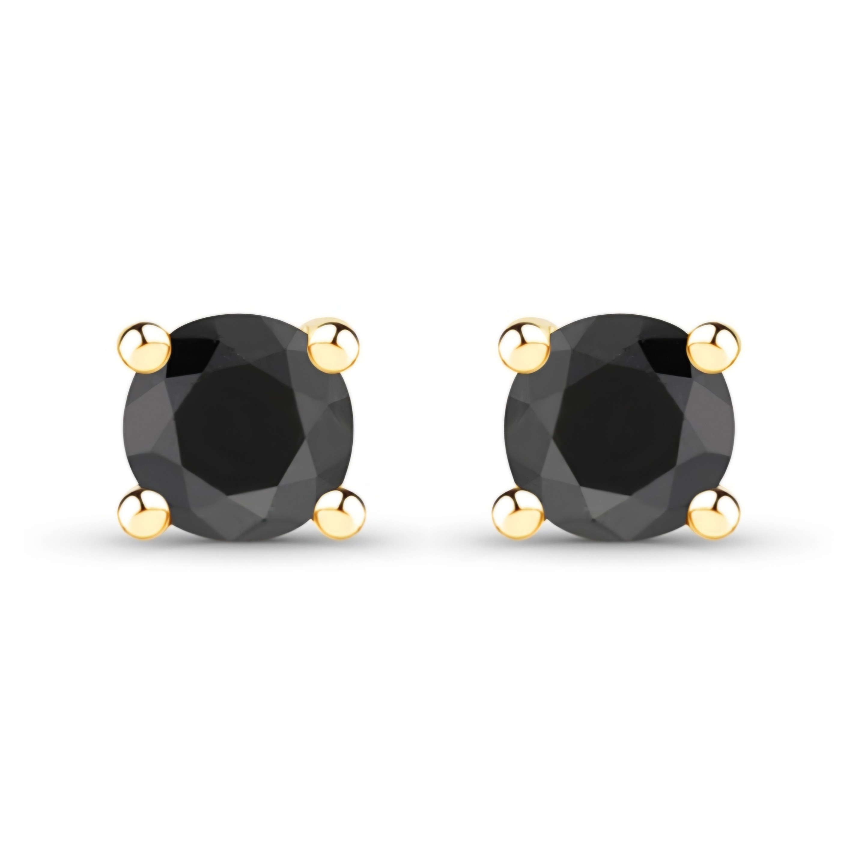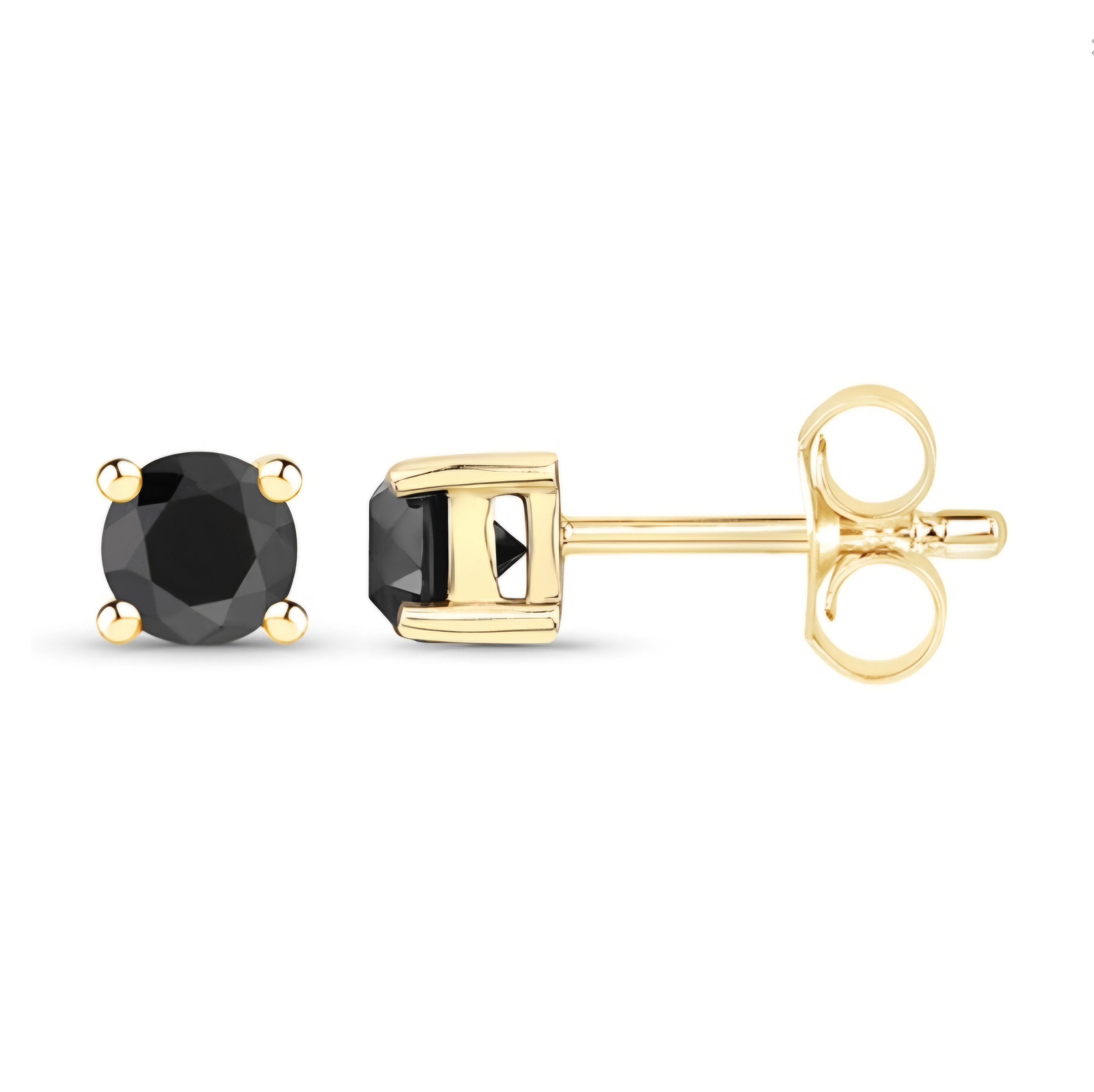 Elevate your style with these effortlessly chic Black Diamond stud earrings from our Fine Jewelry collection. Crafted in 14k Yellow Gold over Sterling Silver, these classic 4.50mm round natural Black Diamonds add a touch of luxury to any outfit. Perfect for both men and women, these unisex earrings are simple yet stunning.