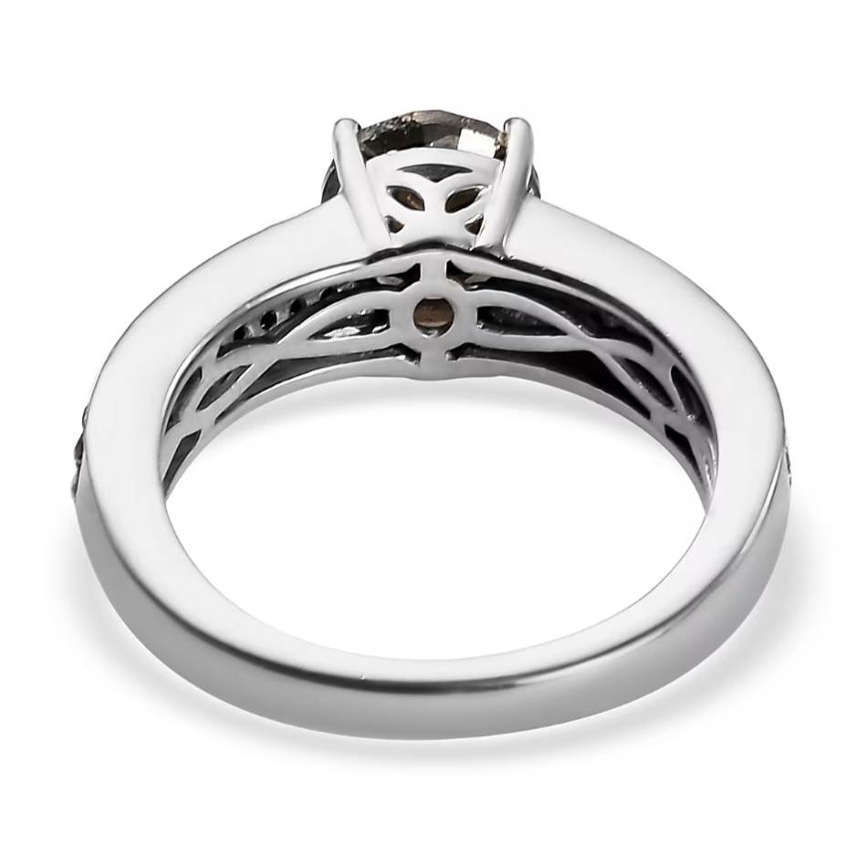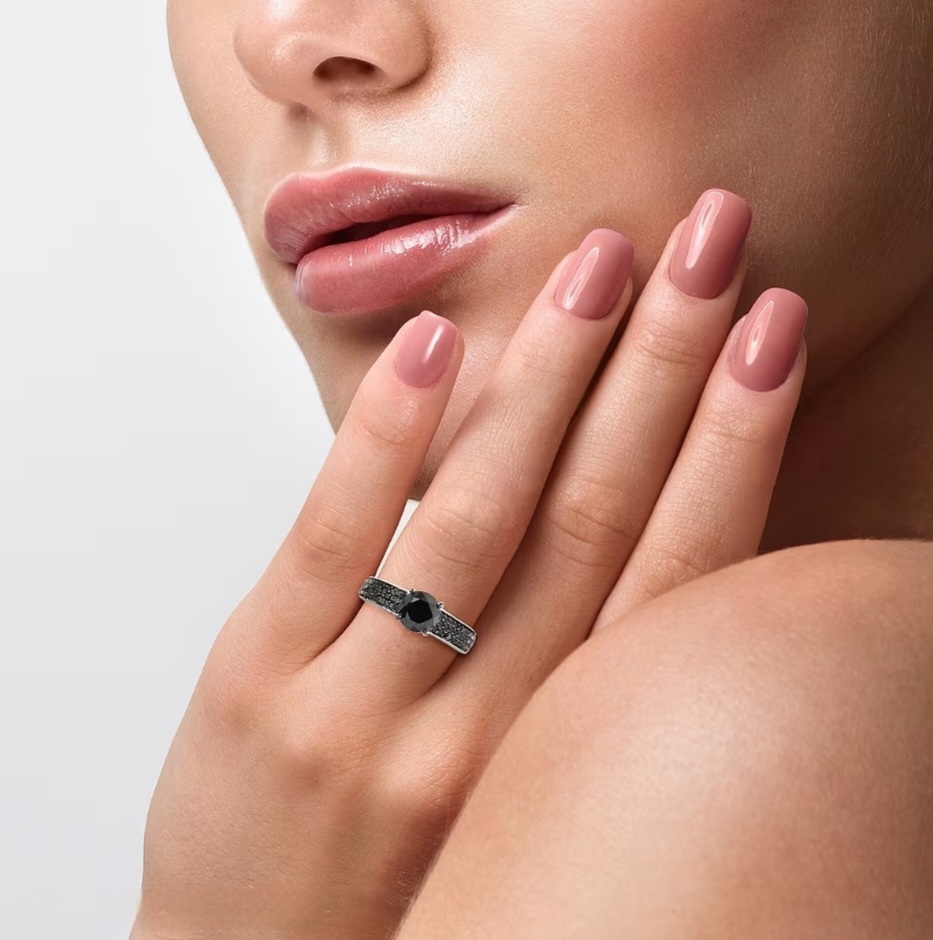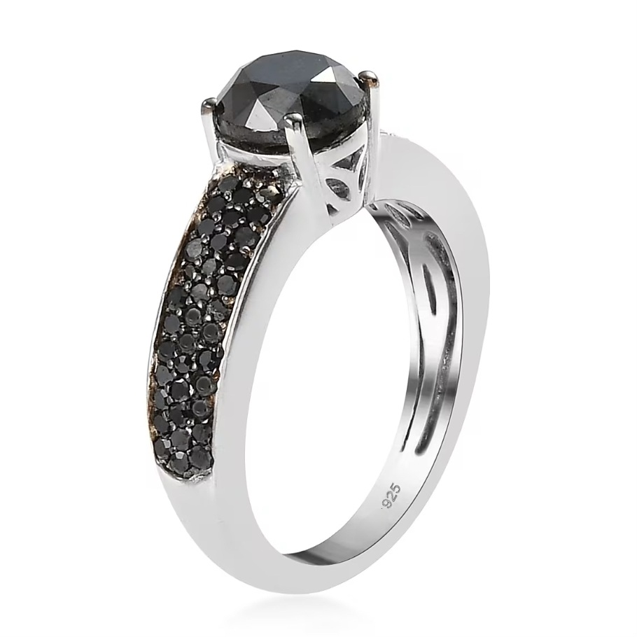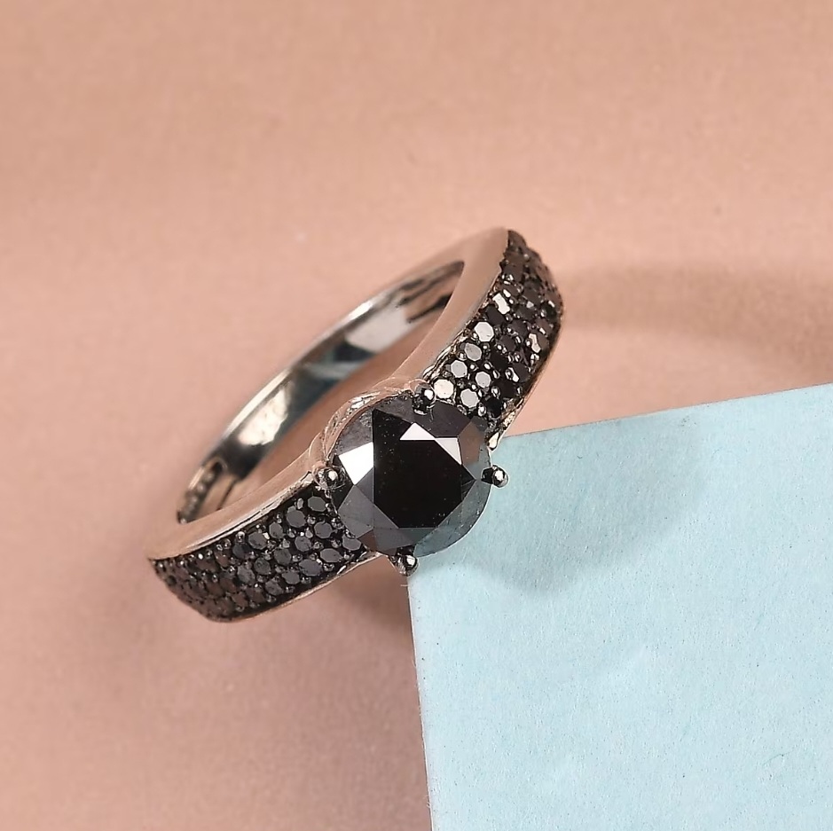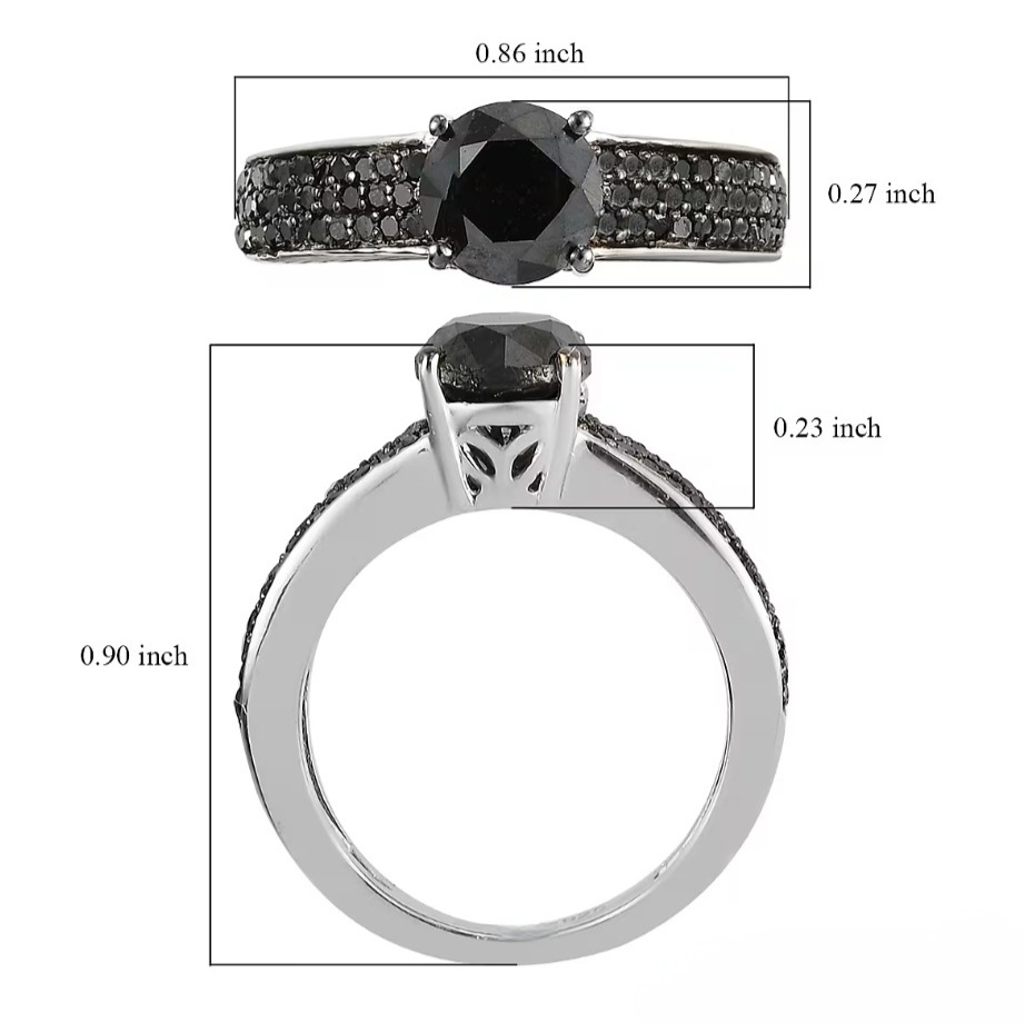 Dark, dramatic, and unforgettable. This ring commands attention with a 1.51ct round-cut black diamond at its center — bold and refined in equal measure. The shoulders are fully encrusted with nearly half a carat of pave-set black diamonds, creating a seamless flow of midnight sparkle. Crafted in sterling silver with contrasting black and white rhodium plating, this piece balances edgy sophistication with timeless solitaire presence. Perfect as a statement ring or unconventional wedding choice, it delivers pure power in every facet.