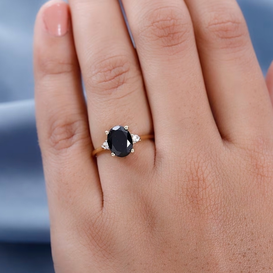 This ring is understated, polished, and confidently minimal AF. At the center sits a sleek 1.90ct Australian Black Tourmaline, precision-cut into a smooth 9×7mm oval that delivers an elegant, inky silhouette. Its deep black tone gives the ring a modern edge while staying wearable for every day.