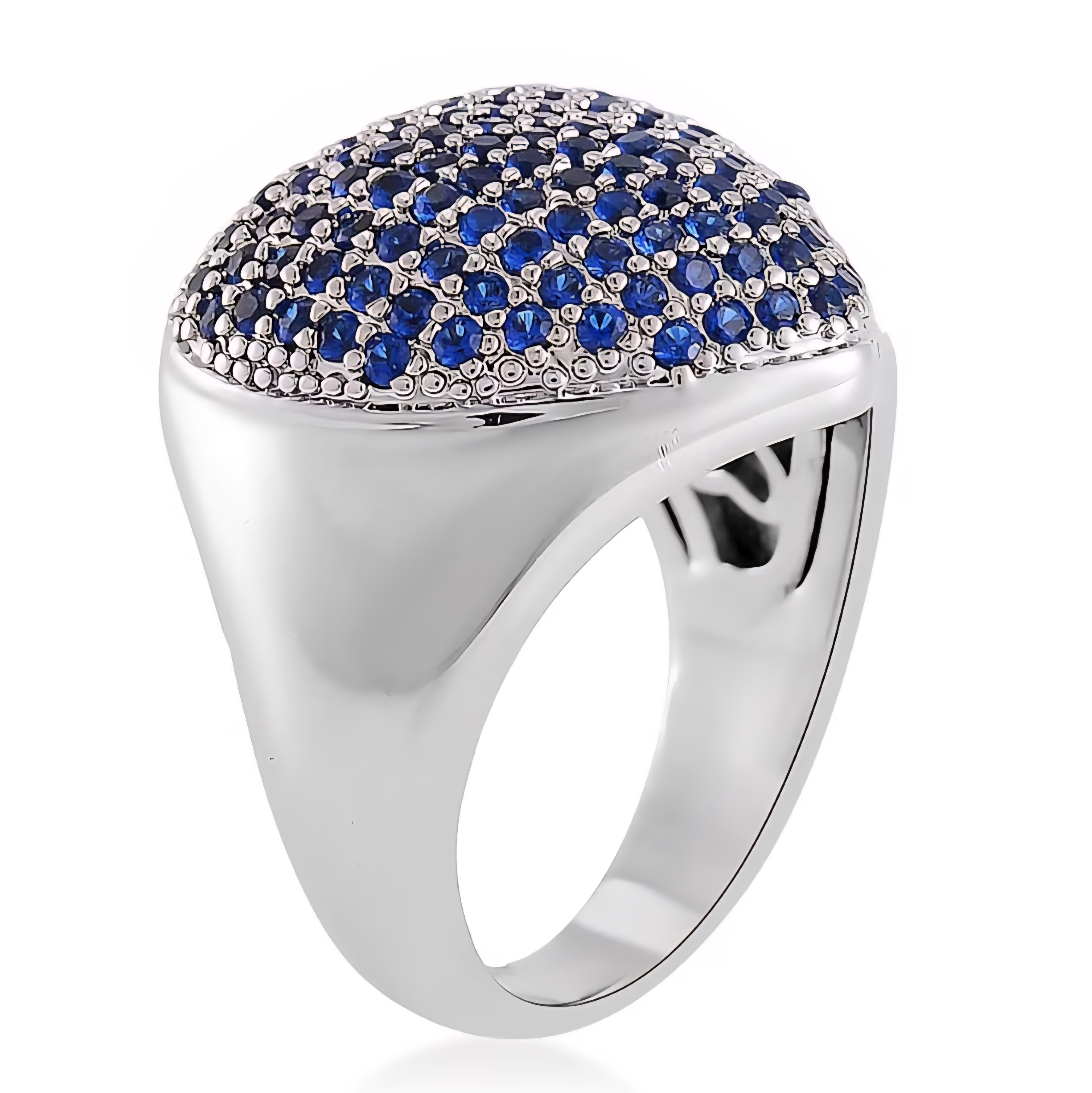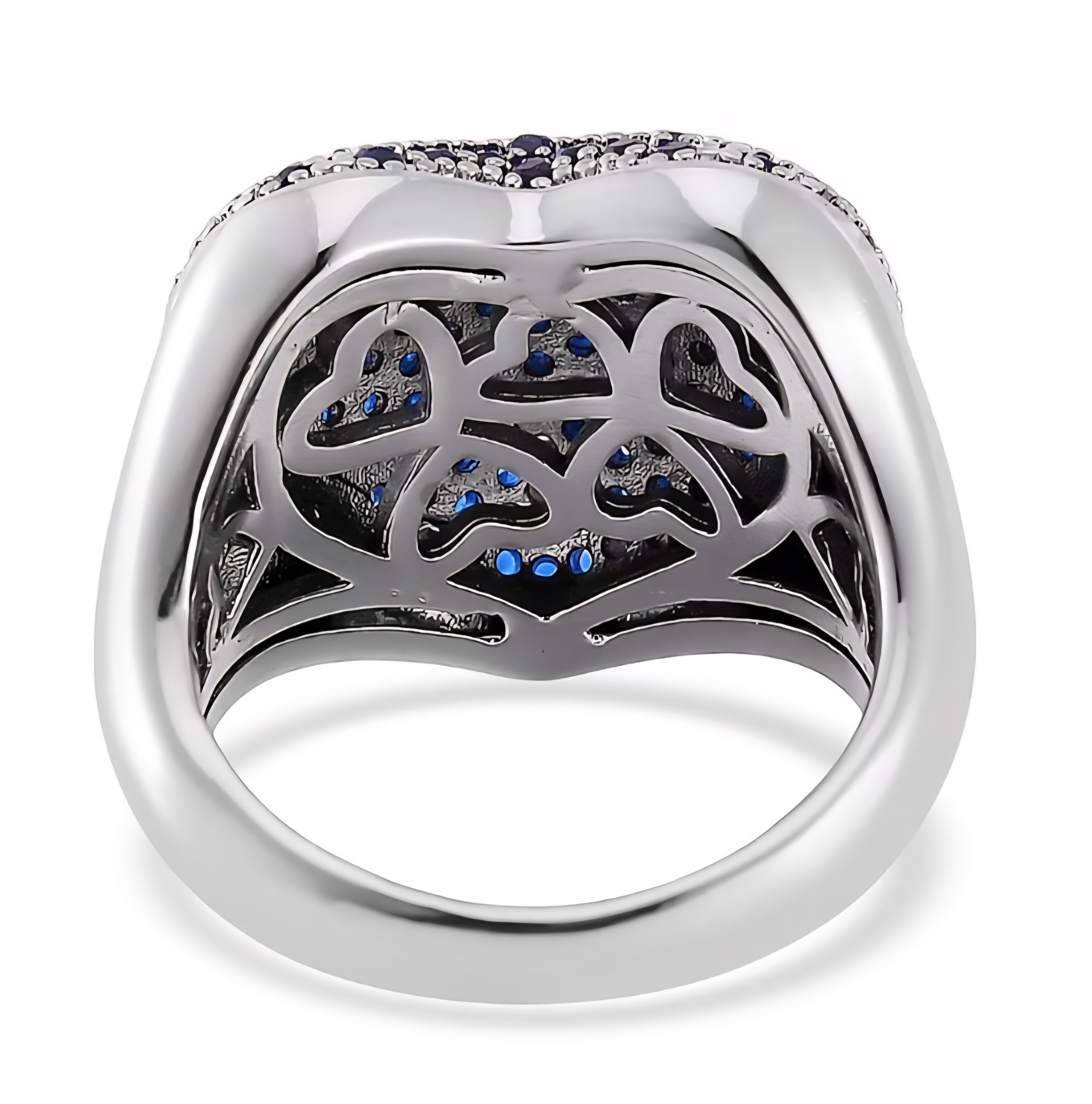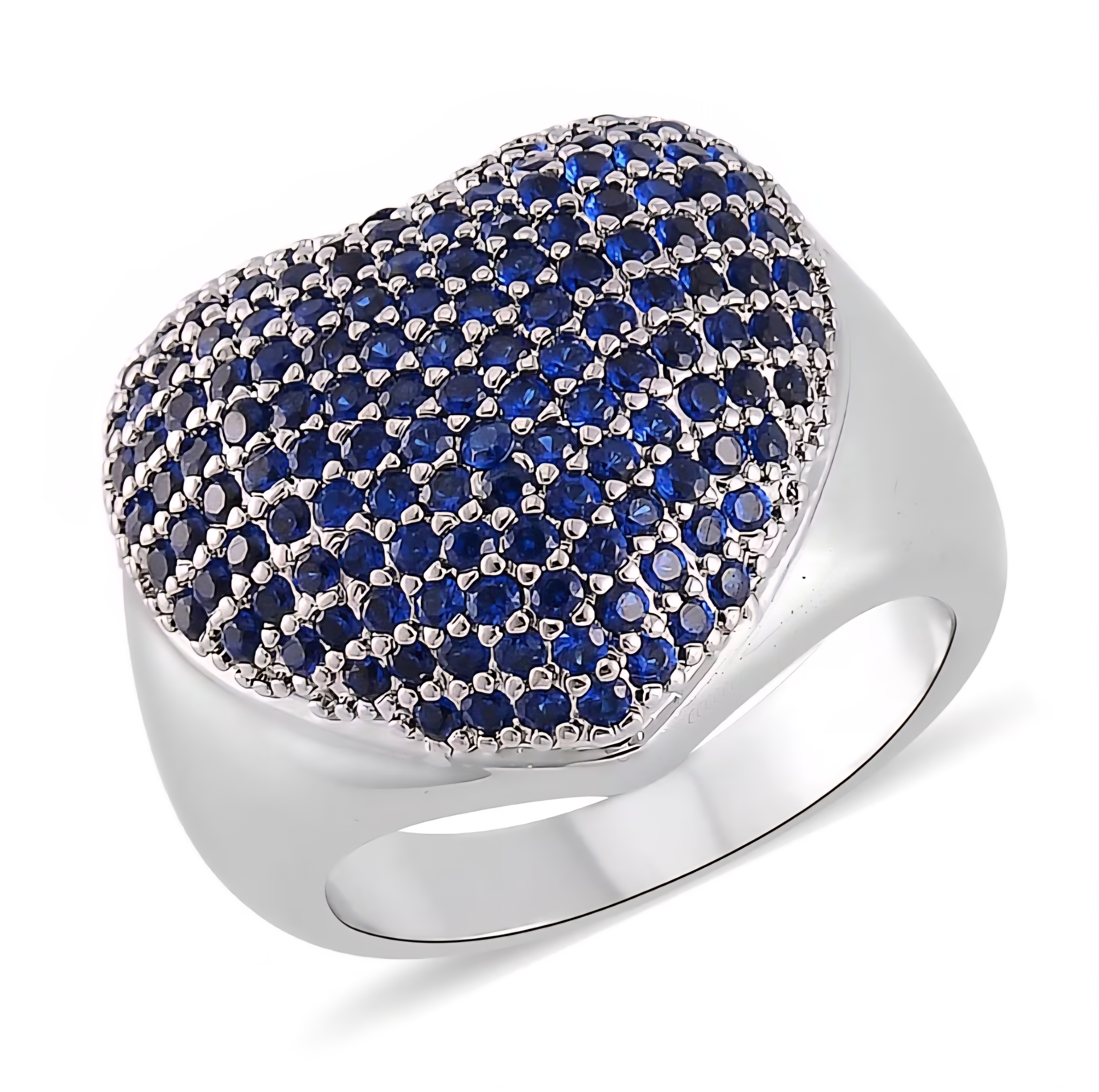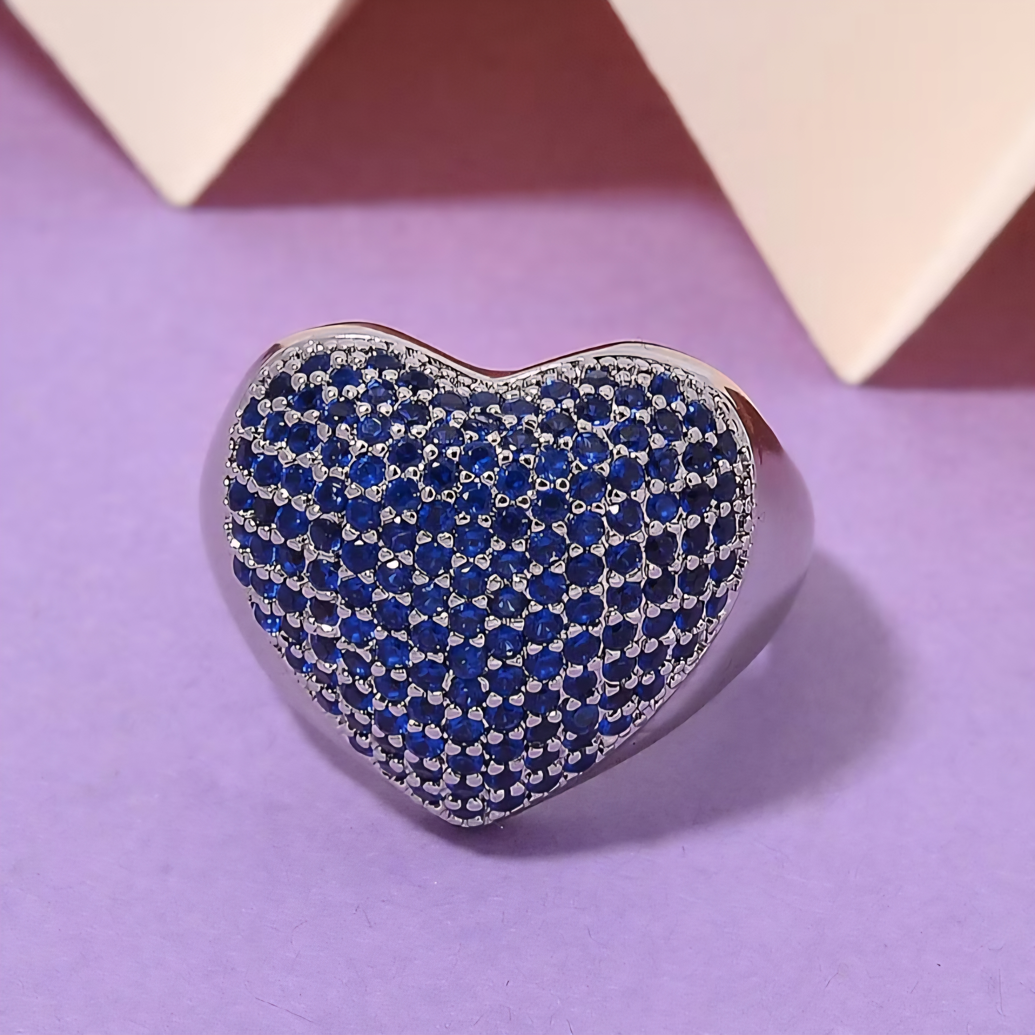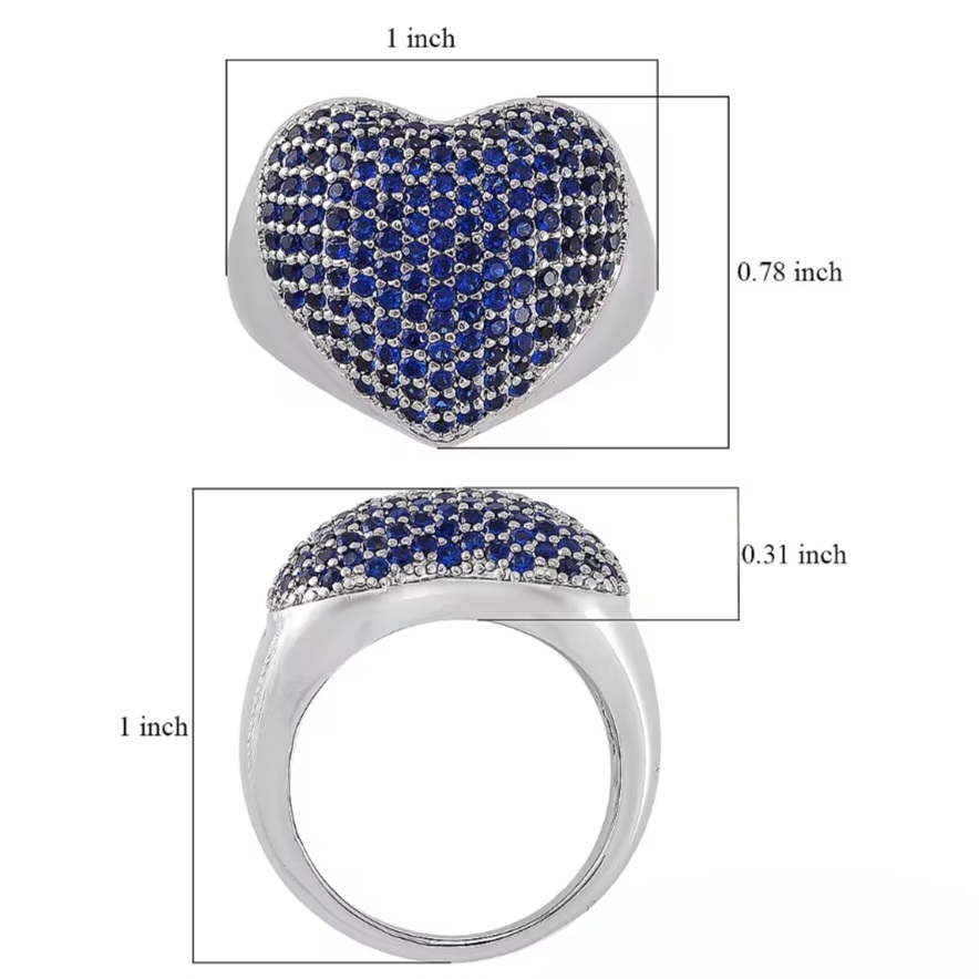 This is not a “cute little heart ring.” This is a full pavé heart drenched in deep blue cubic zirconia, built on a bold, smooth signet style band that actually feels substantial on the hand. The rhodium plated finish gives it that icy, high polish look, while the solid 925 sterling silver underneath keeps it real.