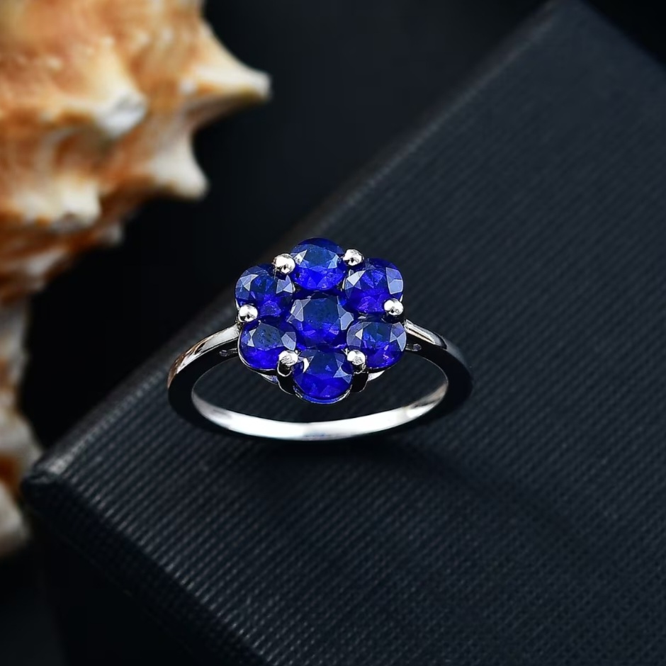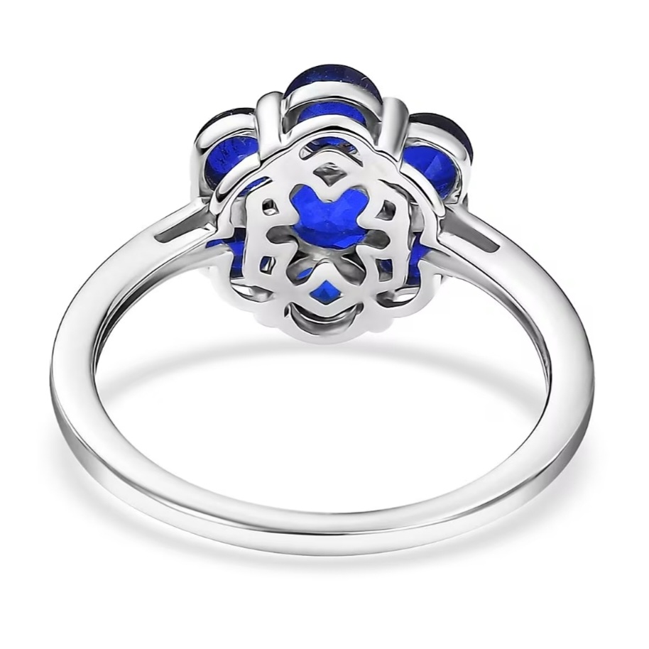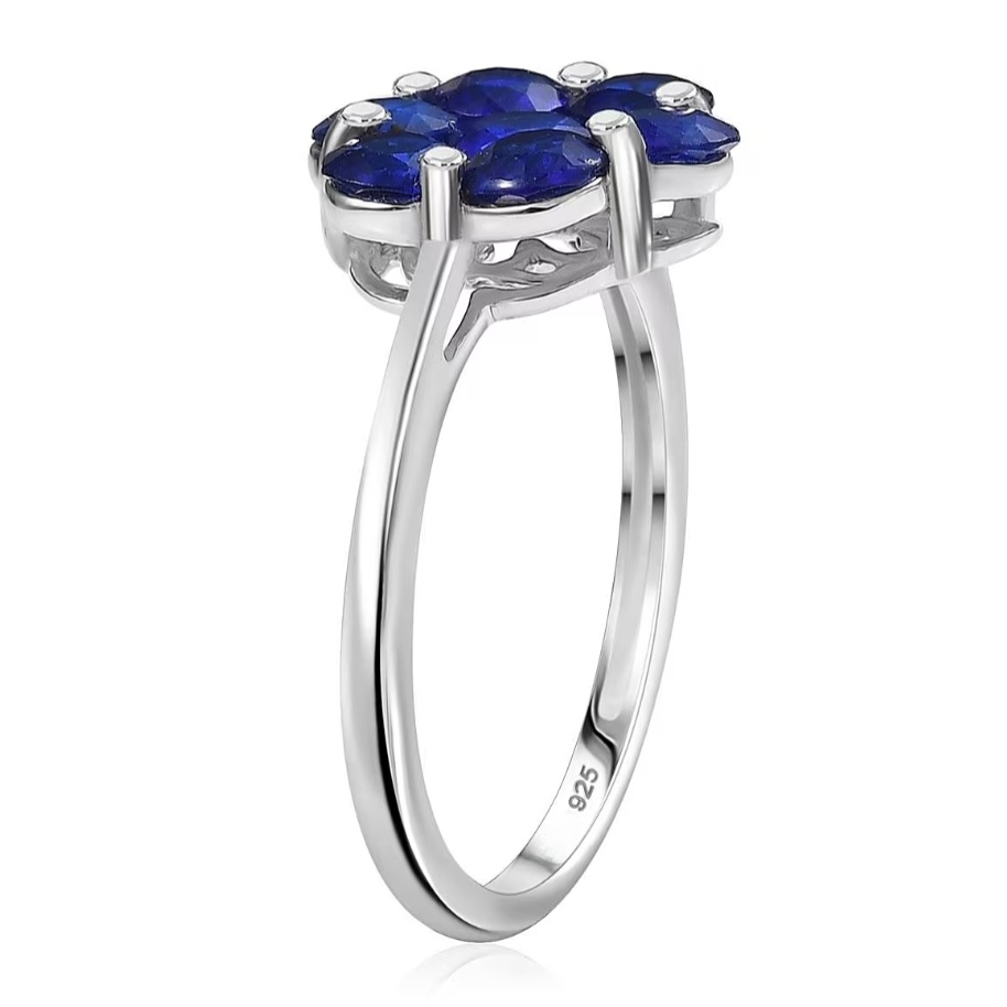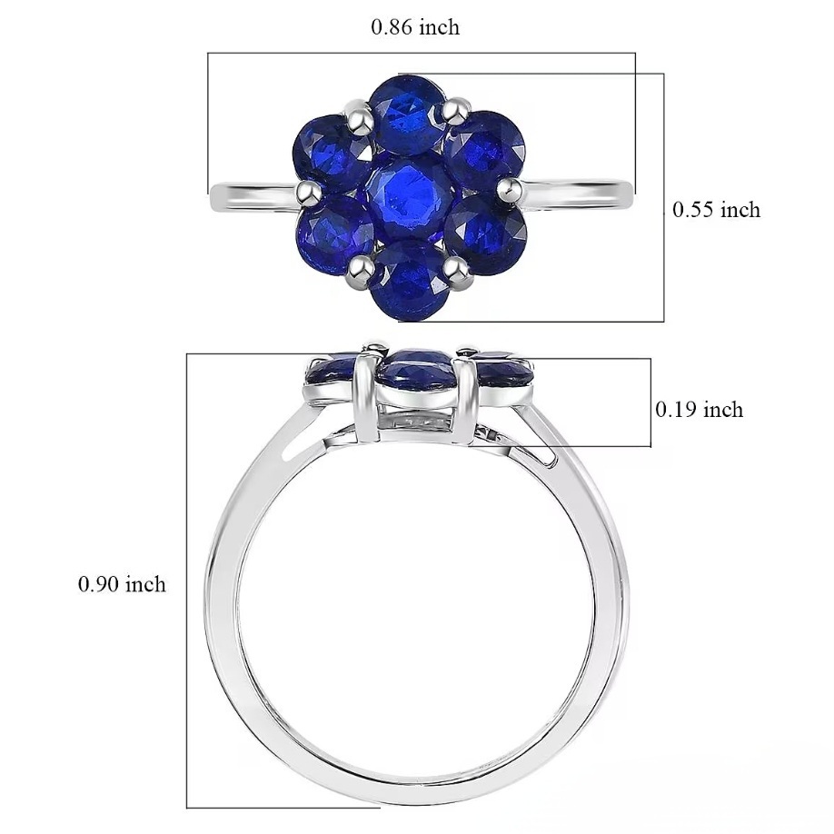 Crafted in solid 925 sterling silver and finished in bright rhodium plating, the metal stays crisp and reflective, letting the blue spinel cluster stand out with maximum contrast.