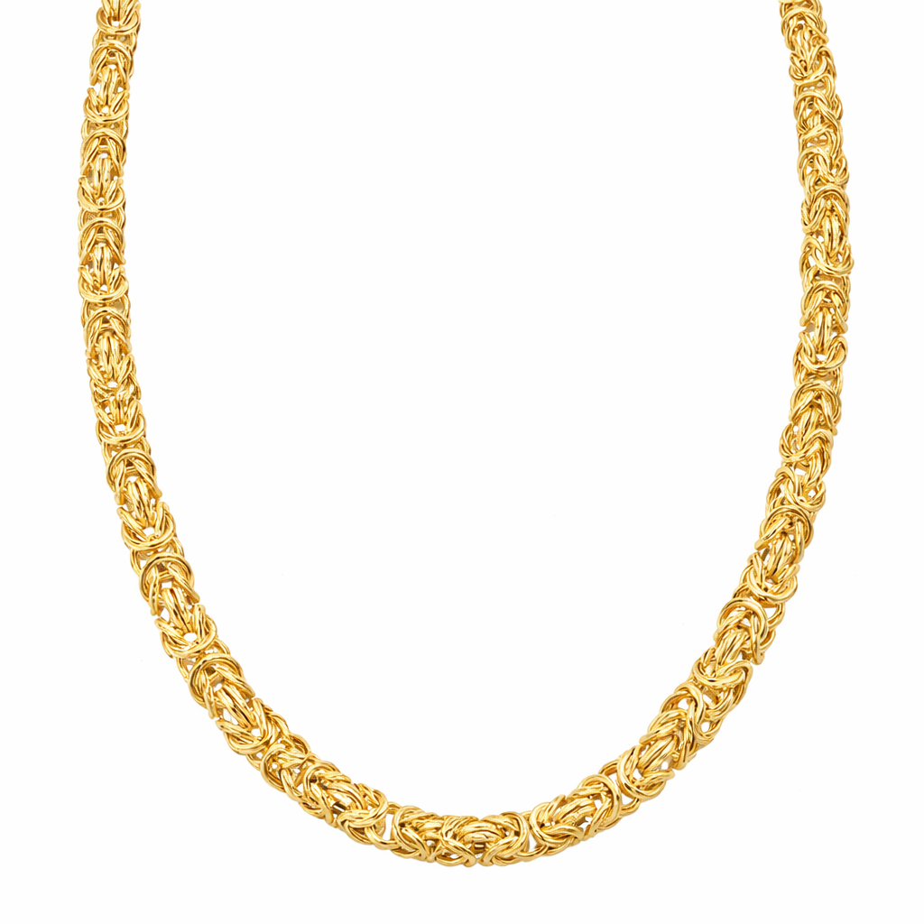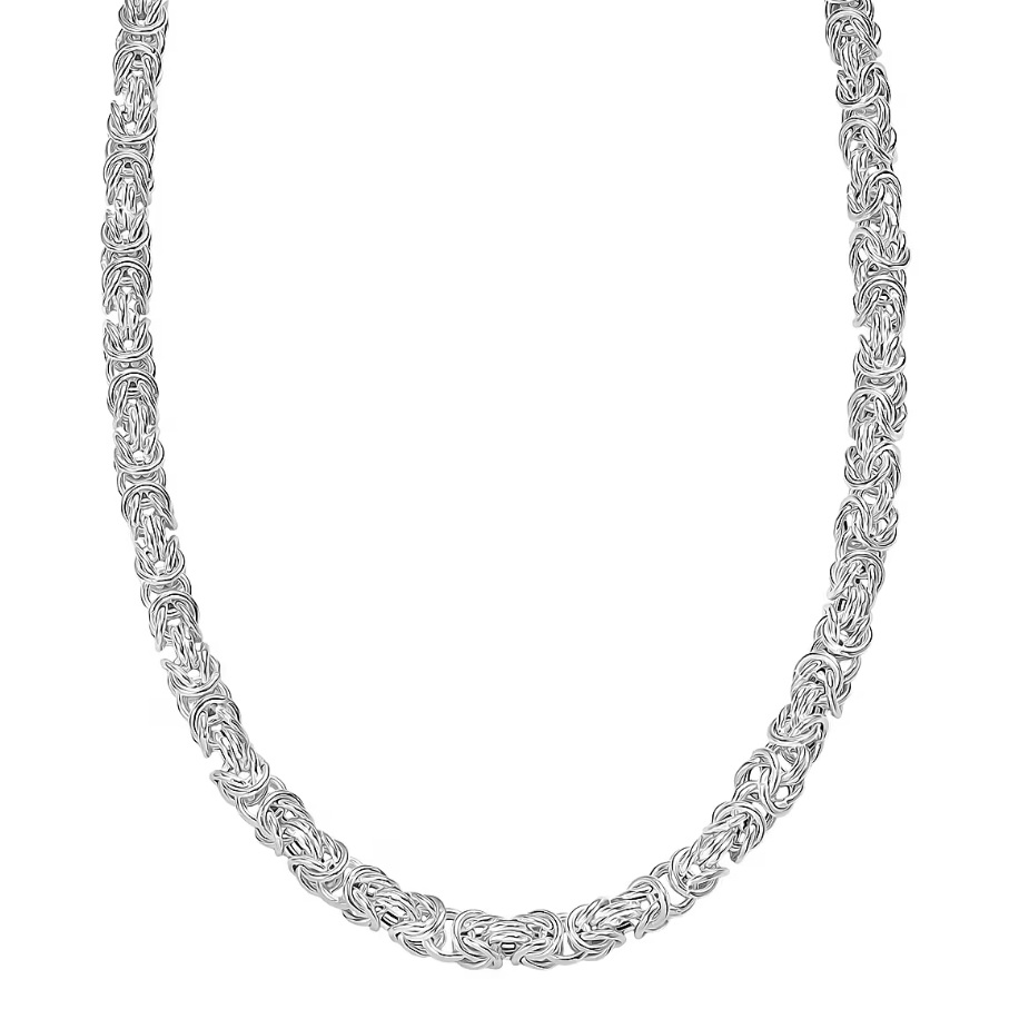 This necklace delivers the unmistakable look of a hand-woven Byzantine chain — intricate, flexible, and built with the weight and presence only solid sterling silver can offer. Each link is individually formed and woven into the tight Byzantine pattern, giving the chain its signature texture and fluid movement.