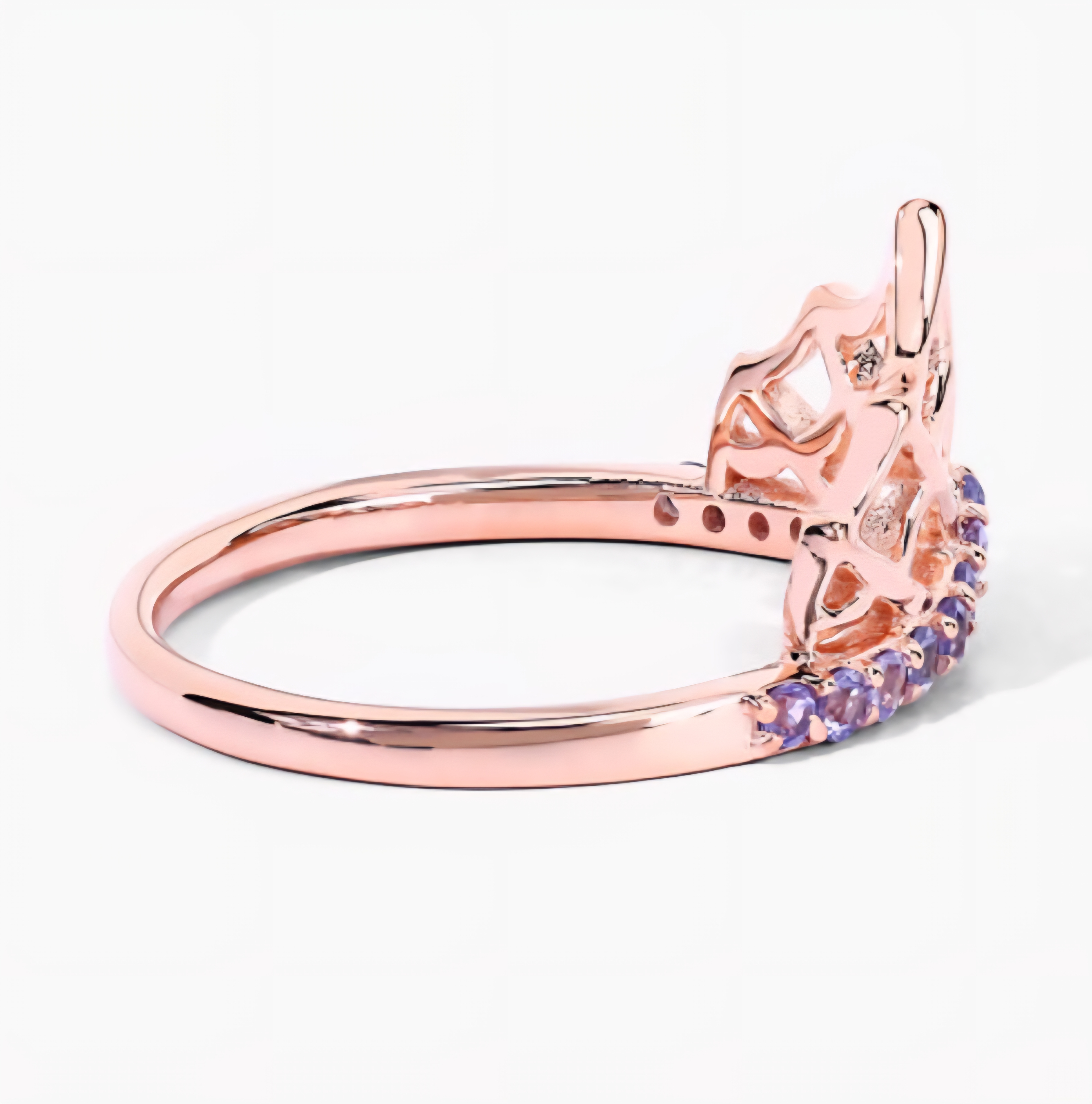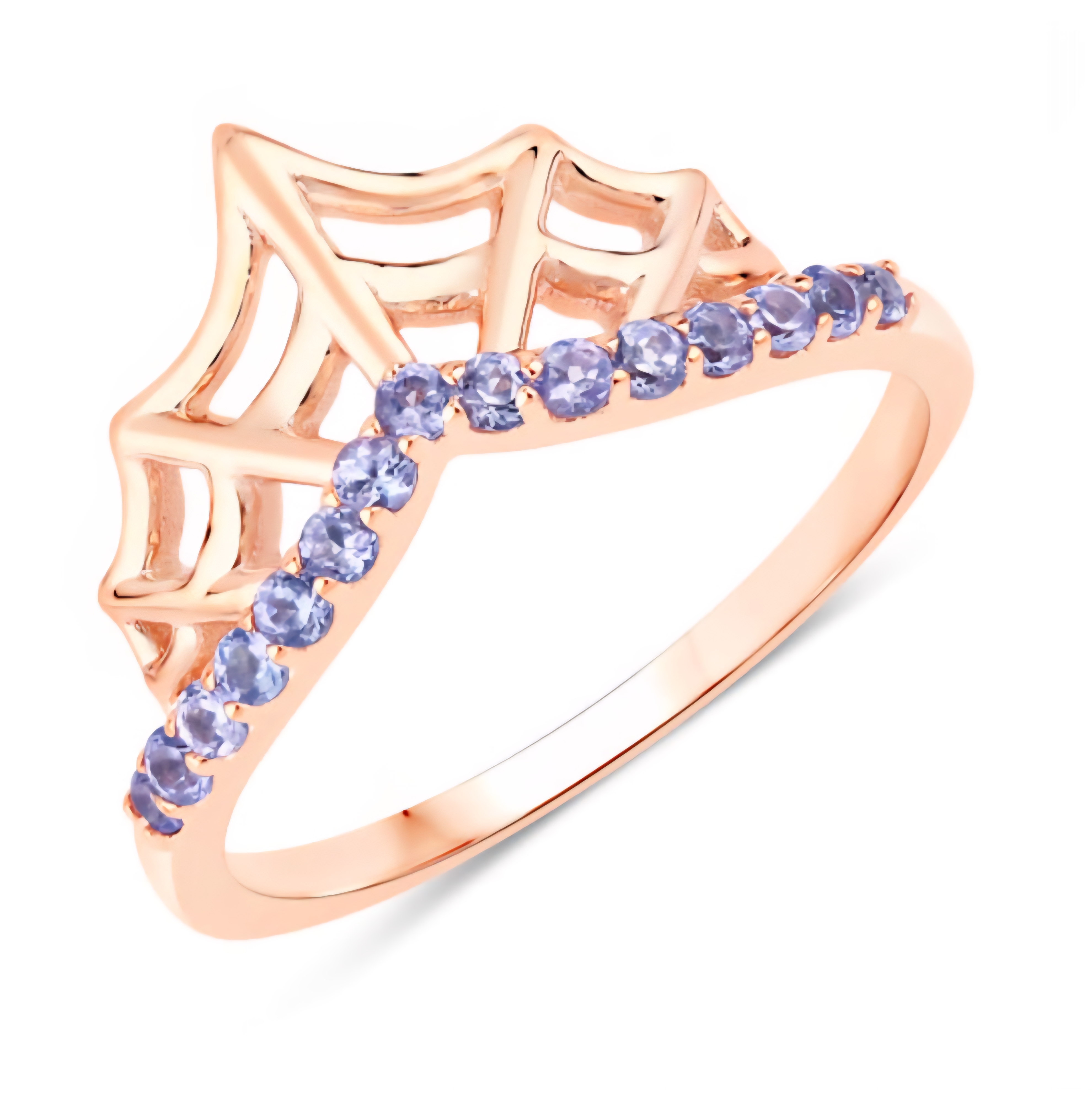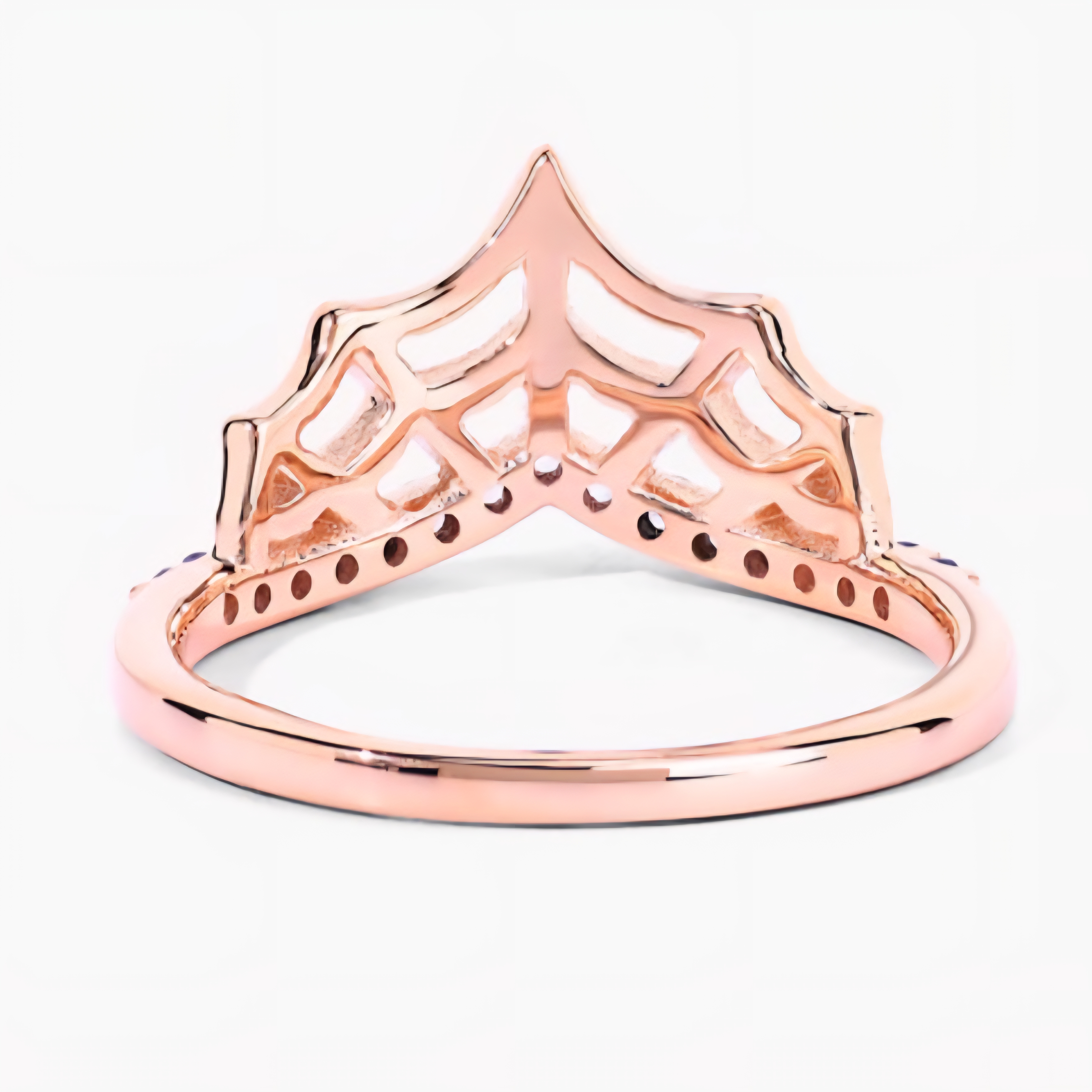 A little gothic. A little glam. Entirely unforgettable. This chevron-style spider web ring is crafted in solid sterling silver and finished with 18K rose gold plating for a soft, glowing contrast against vivid tanzanite gemstones. The delicate arc of violet stones outlines a sculpted geometric web — elegant, edgy, and built for stacking or standing alone. It’s equal parts spooky and sophisticated — the kind of piece that sneaks up on you.