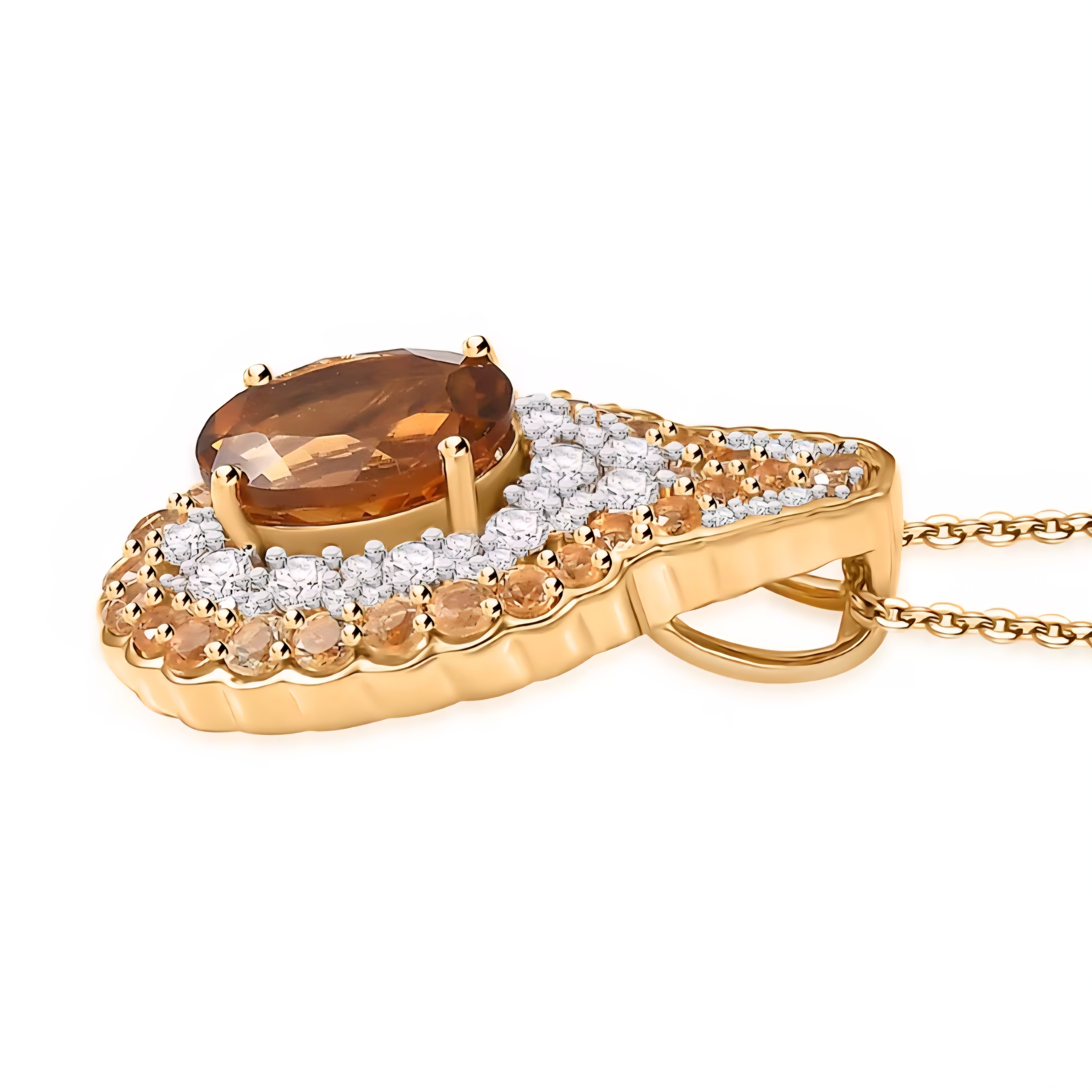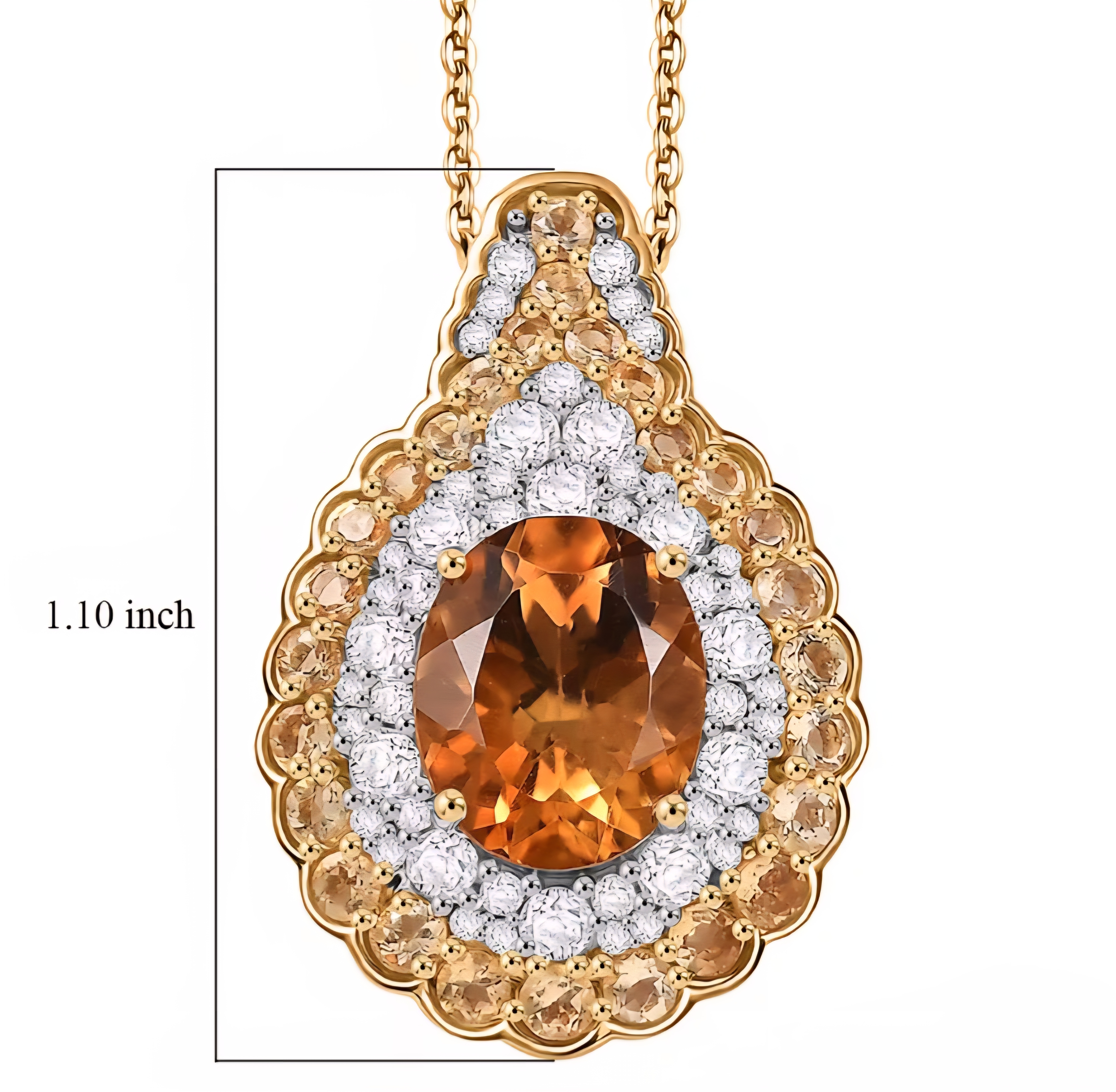 The two tone finish in 18K yellow gold with rhodium accents sharpens the contrast between the orange citrine and the white zircon so every detail stands out. Solid 925 sterling silver construction with substantial presence and serious sparkle from every angle.