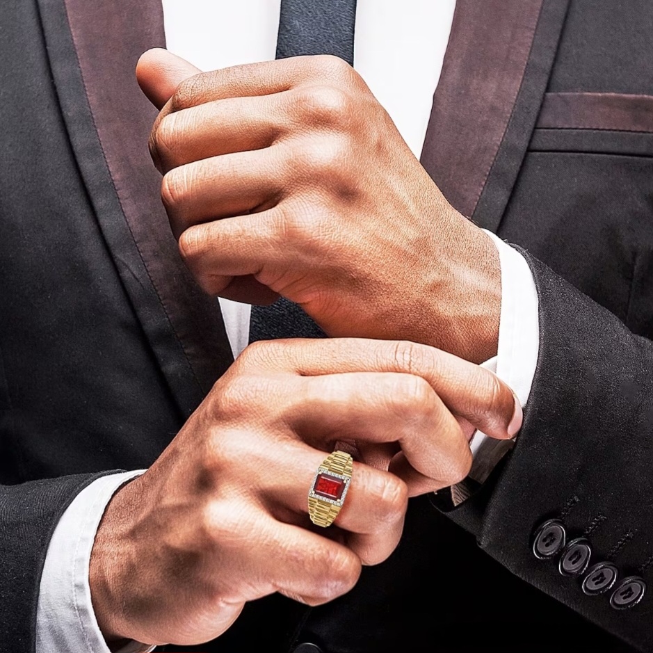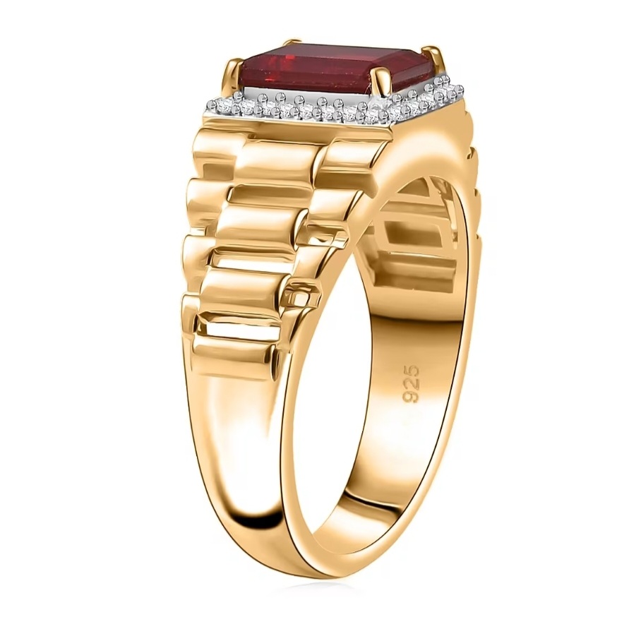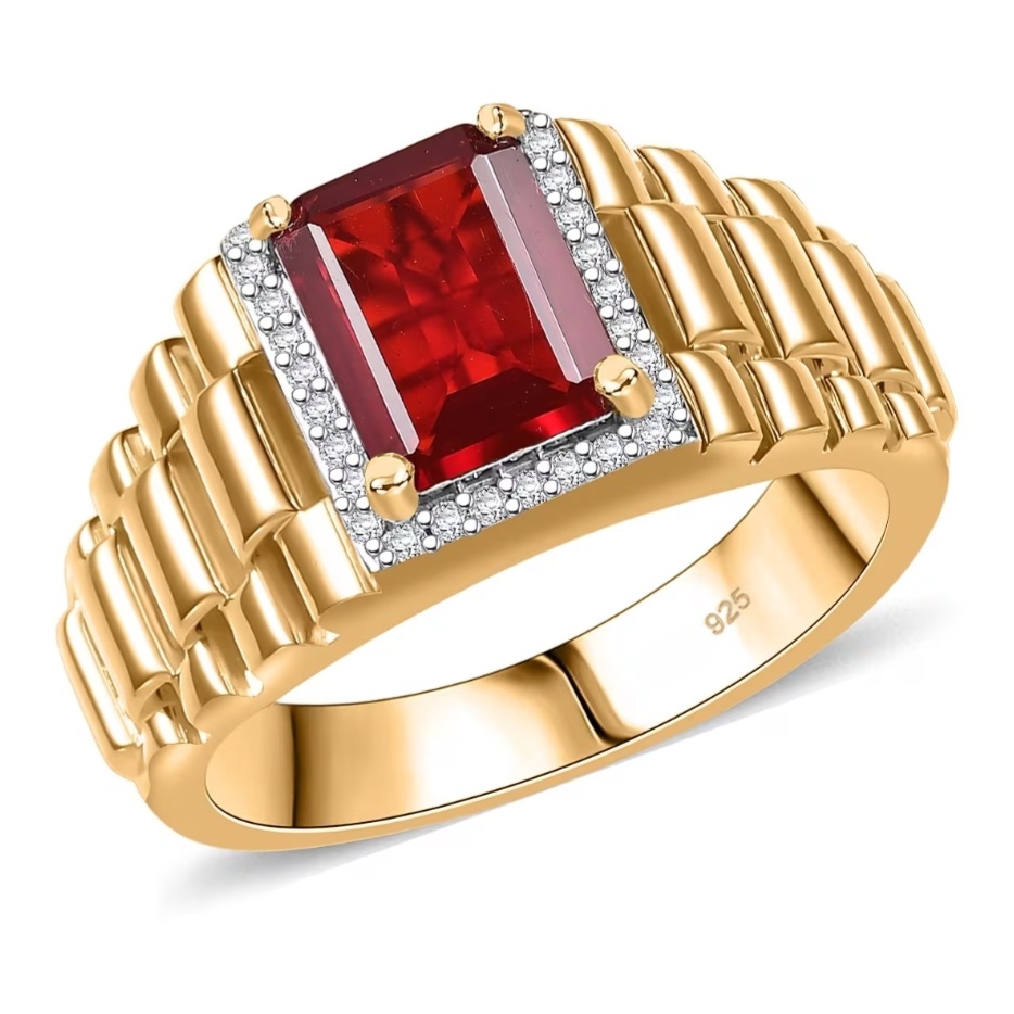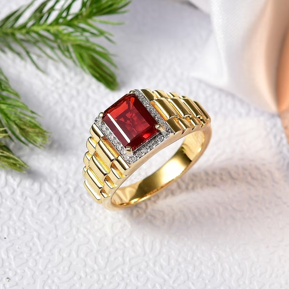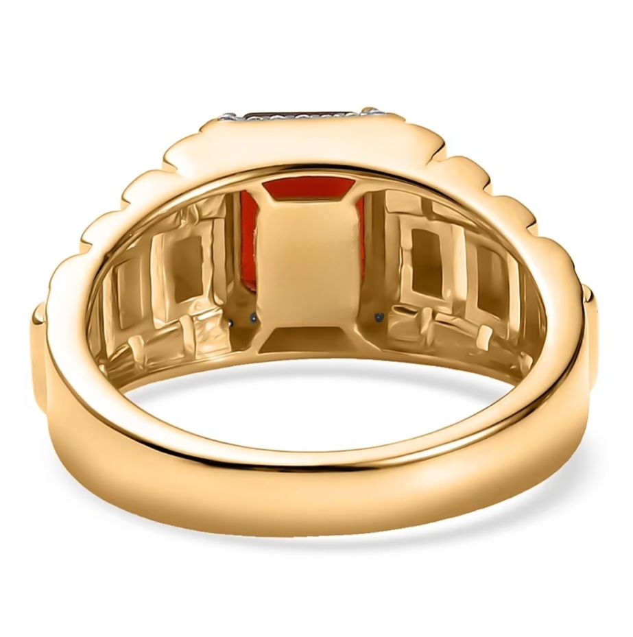 Crafted in solid 925 sterling silver with 18k yellow gold plating, the ring blends warmth, weight, and a statement-making silhouette. This is the gent’s fire opal ring that doesn’t just show up — it dominates the room.