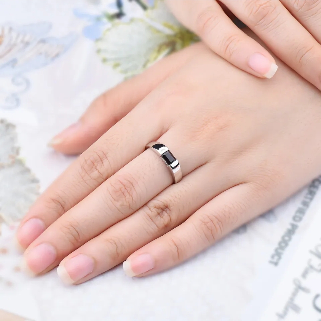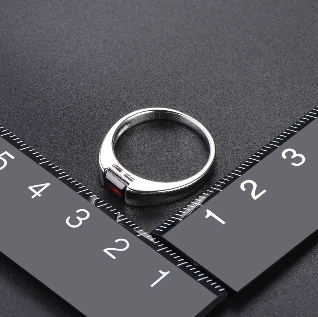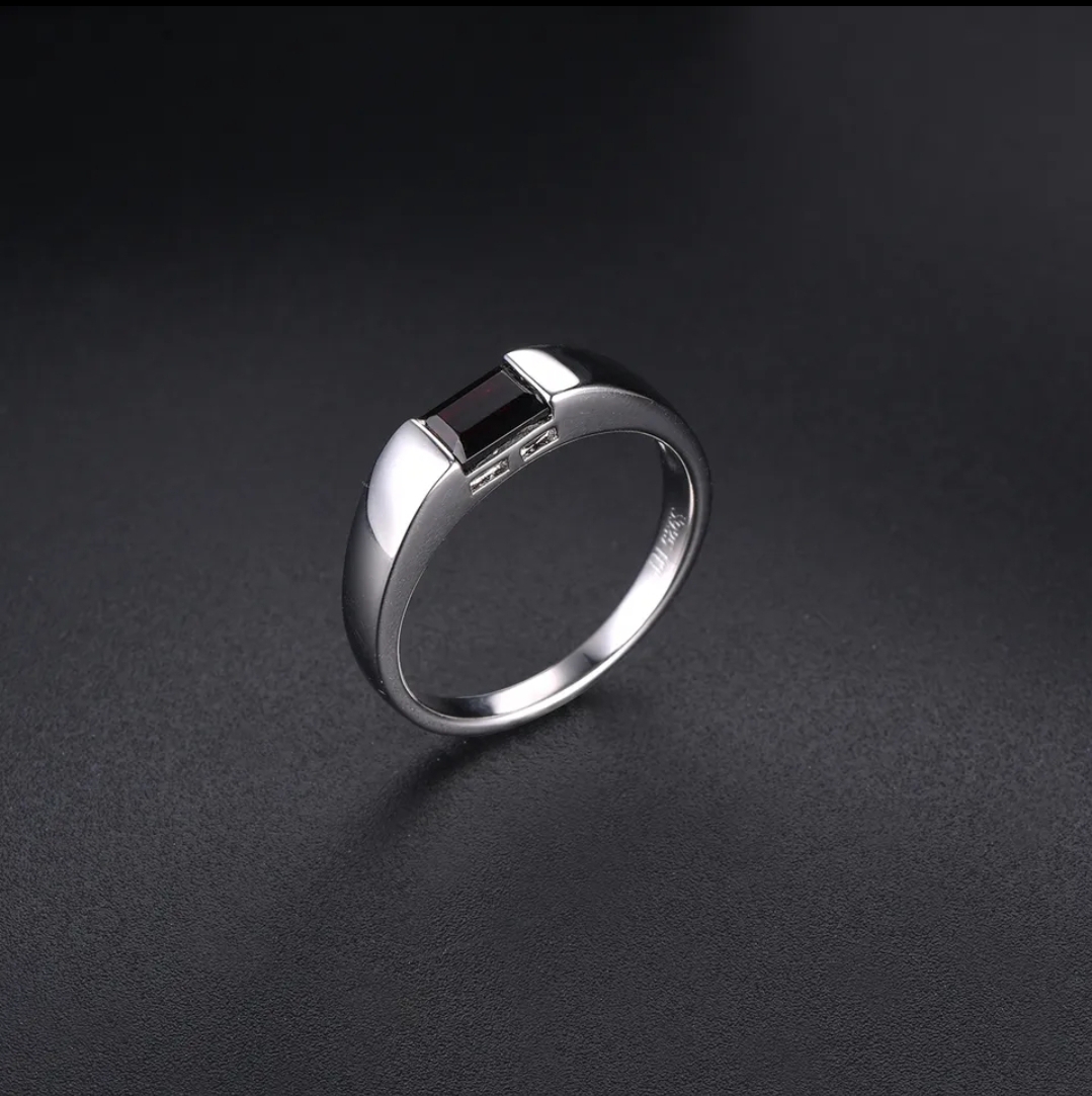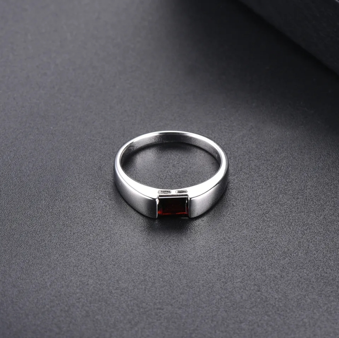 Looking for a men's ring that's both stylish and versatile? Look no further than the Garnet Emerald Cut Solitaire Men's Ring in Rhodium over Sterling Silver. Its dark, deep red hue makes it the ideal accessory for any outfit, whether you're going for a classic look or something more casual. Crafted with care from high-quality materials, this ring is a must-have piece that's sure to become a staple in your wardrobe.