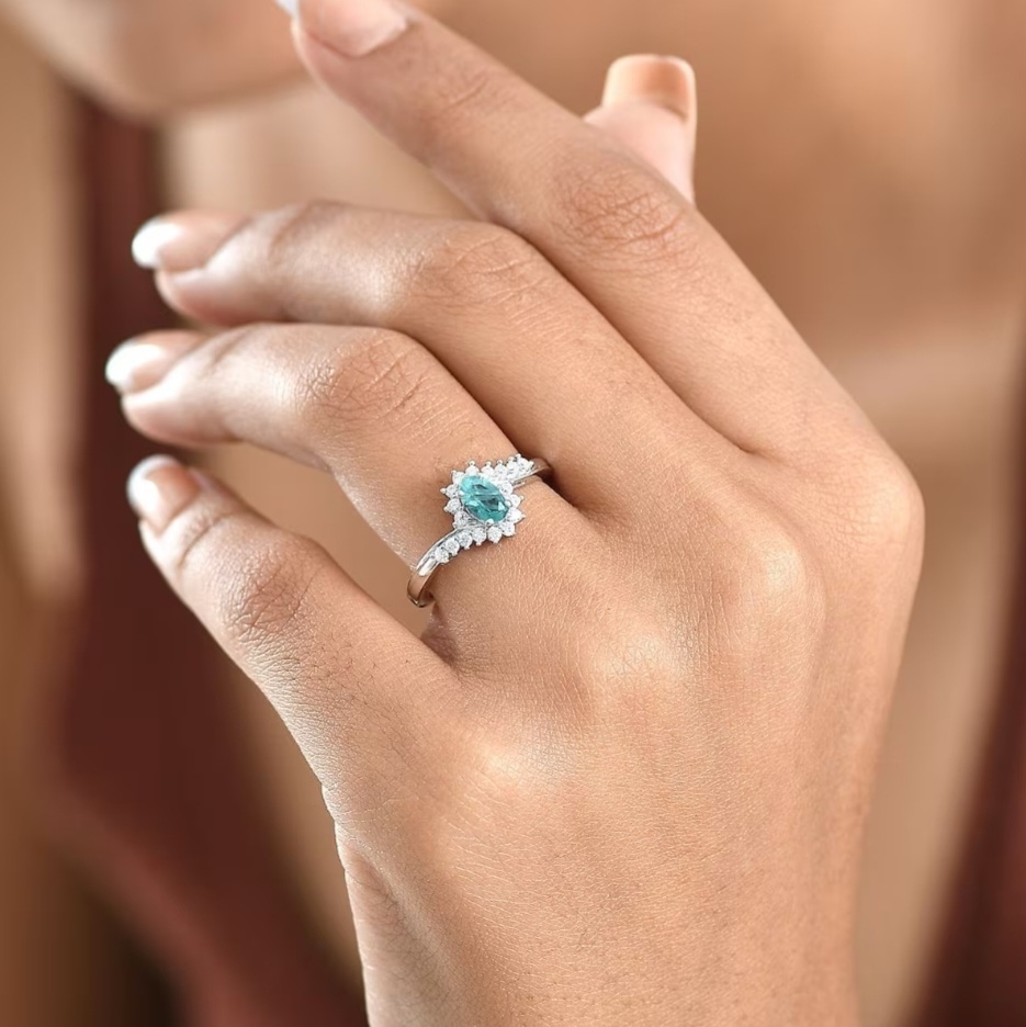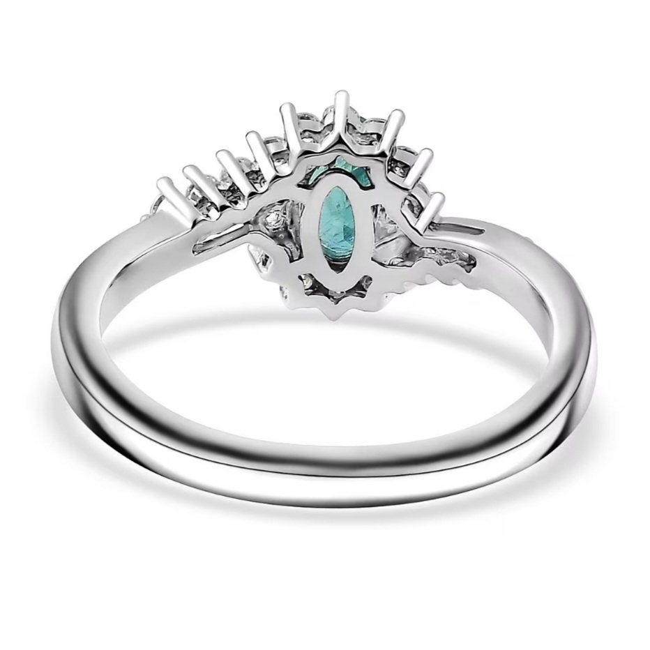 Crafted in solid 925 sterling silver with polished rhodium plating, the ring keeps a crisp, modern finish that amplifies the cool tones of the gemstone. Light, elegant, and effortlessly wearable, this is a standout design built around a truly special stone.