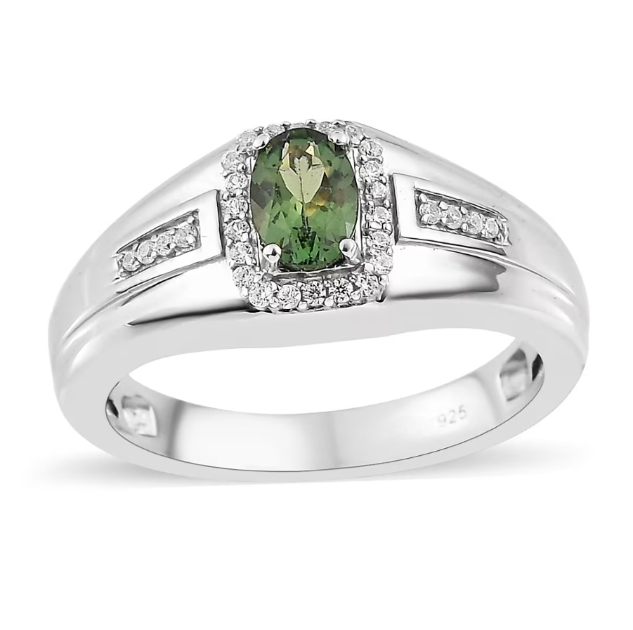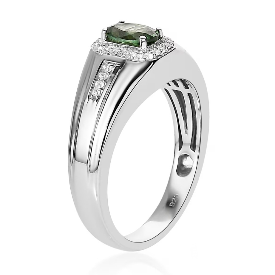 A crisp halo of white zircon accents frames the apatite, adding bright contrast and just enough brilliance to elevate the look without turning it into an overly flashy style. The shoulders feature additional zircon detailing, giving the ring extra presence and a more finished, high-end look from every angle.