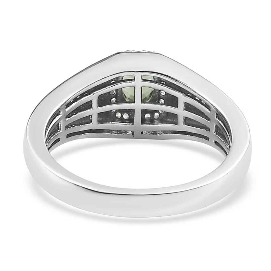 Crafted in solid 925 sterling silver and finished in bright rhodium plating, the ring has a clean mirror shine that keeps the overall look sharp and modern.