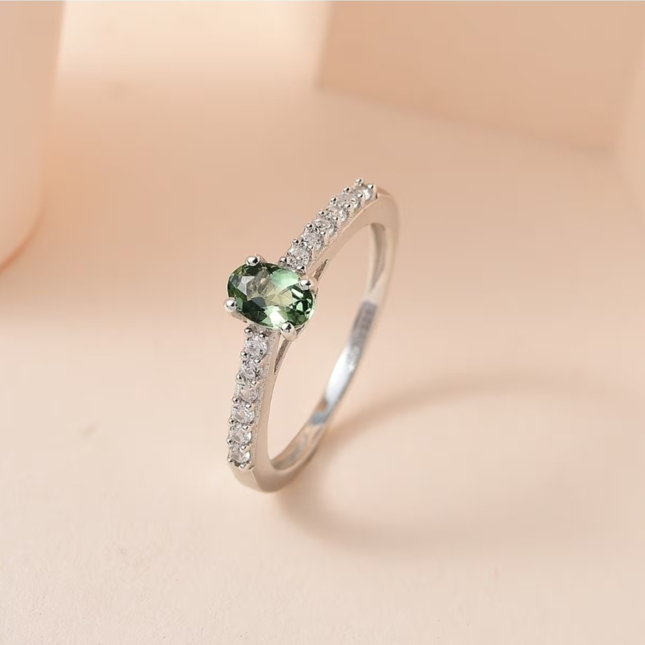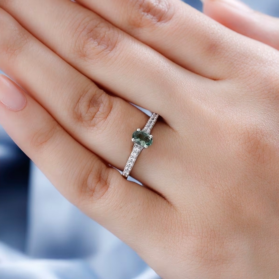 A perfect choice for someone who wants a classic solitaire look with a unique green gemstone twist.