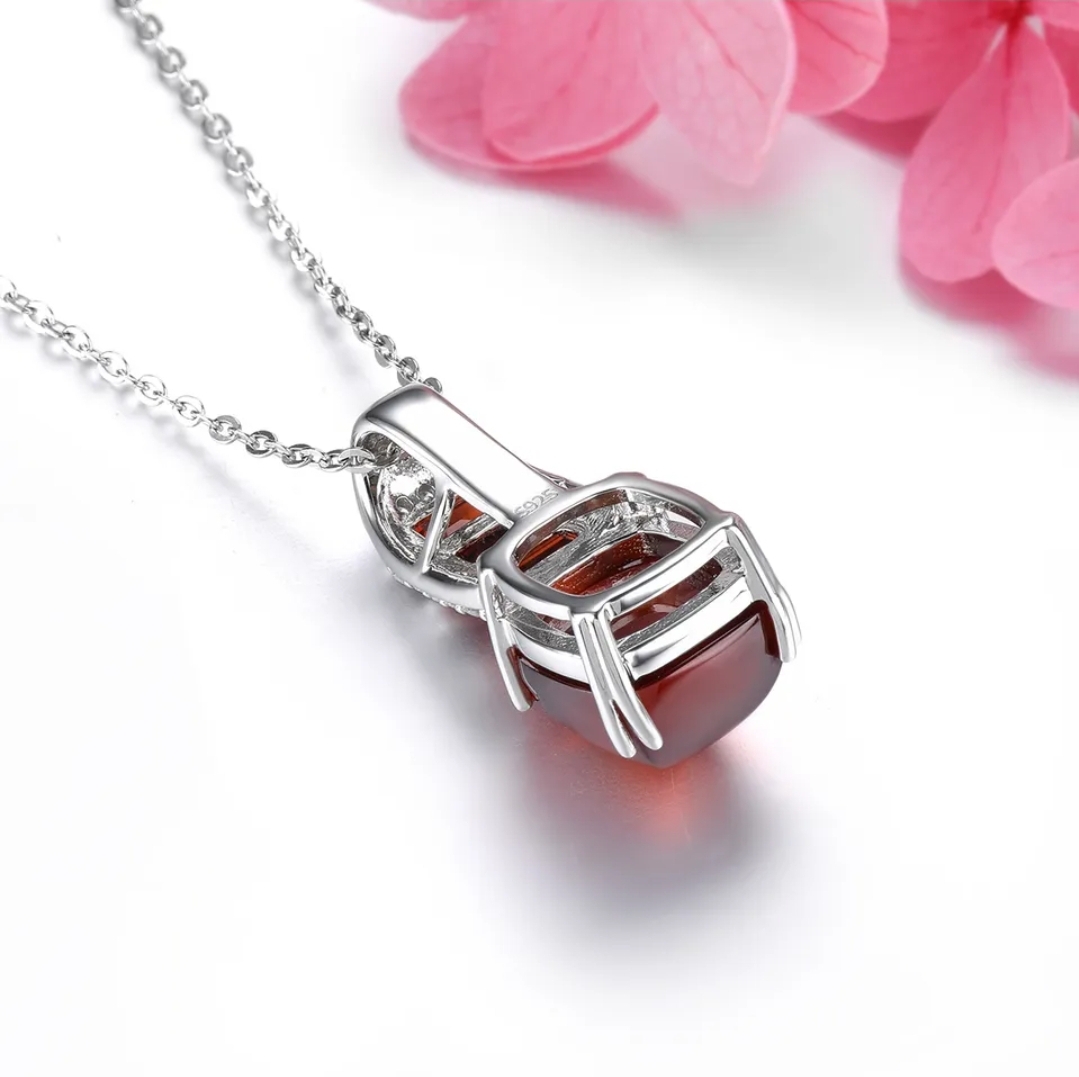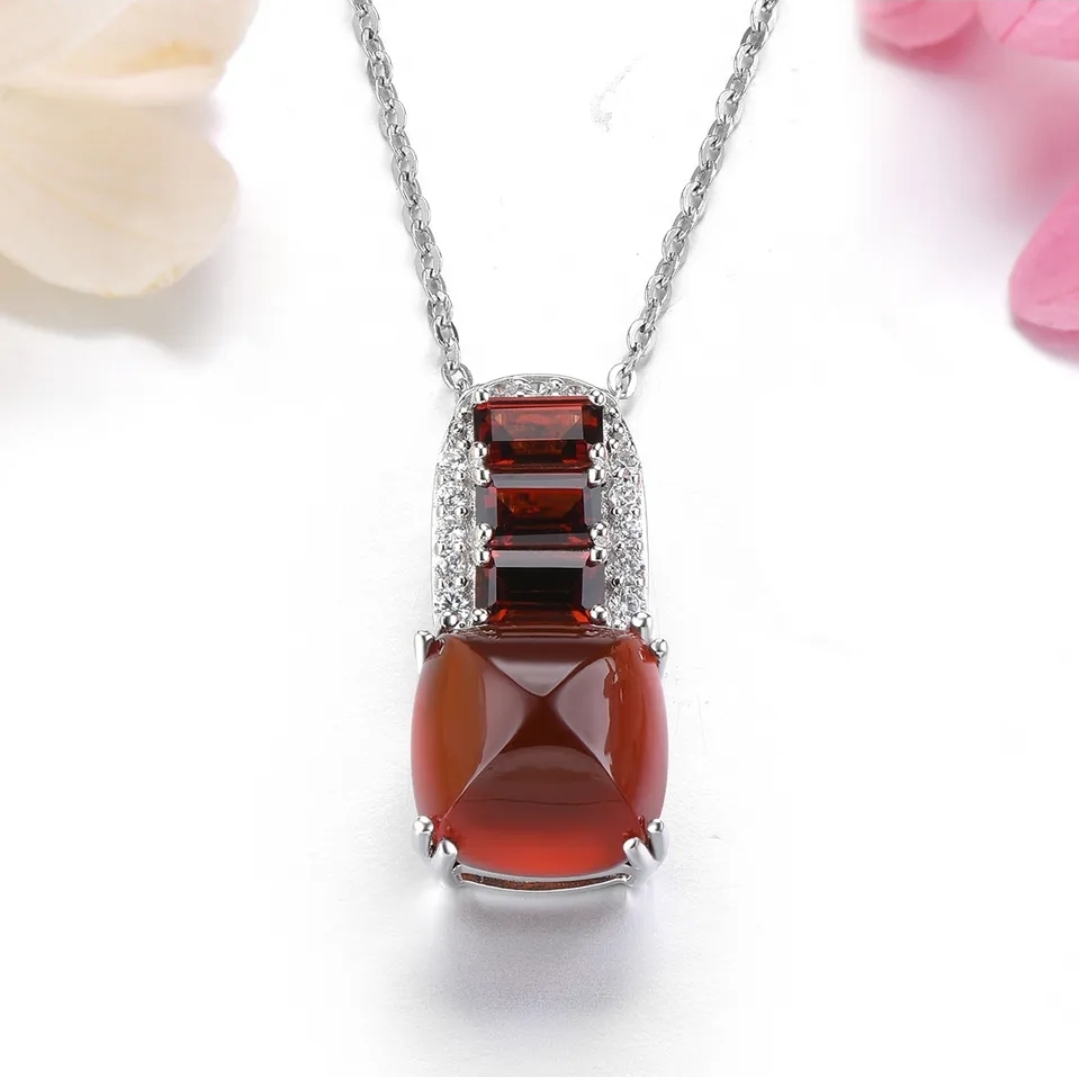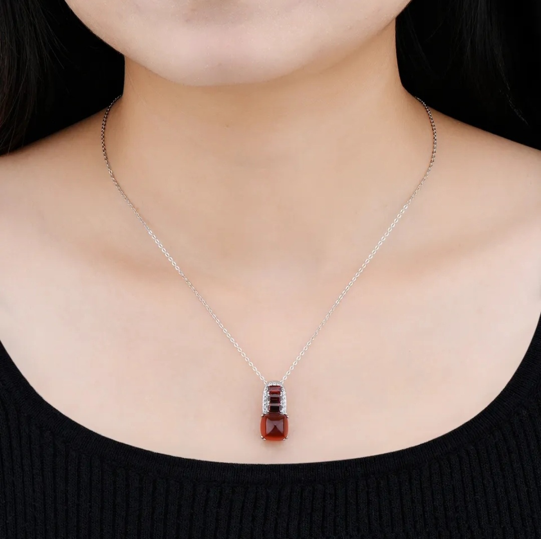 Exquisitely Crafted Hessonite, Red Garnet and Zircon Sugar Loaf Pendant Necklace