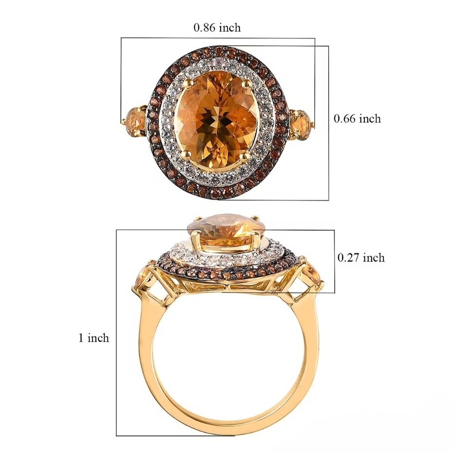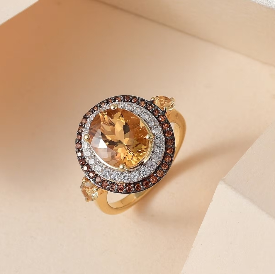 The double halo is where the design comes alive. A bright inner ring of white Zircon brings clean, diamond-like brilliance, while the outer halo of brown Zircon adds depth and warmth, creating a seamless transition into the golden center stone. The combination creates a layered, dimensional glow that feels luxurious and unmistakably unique.
